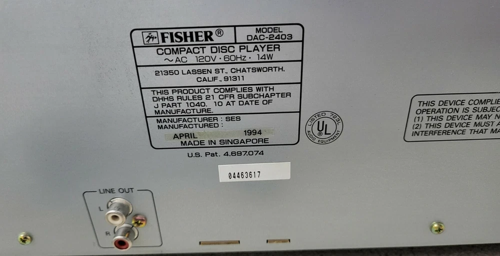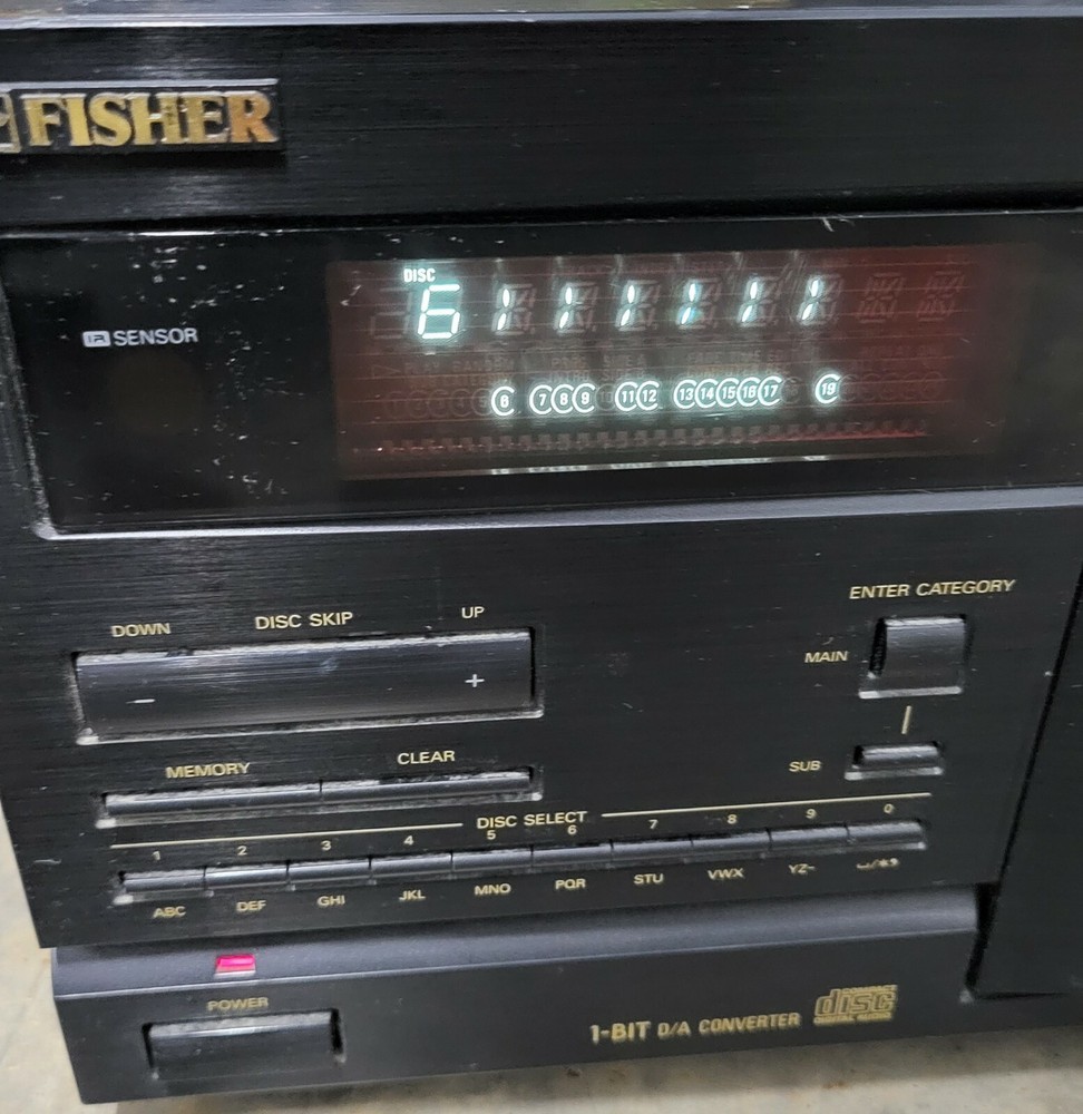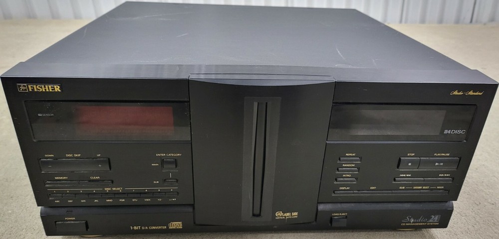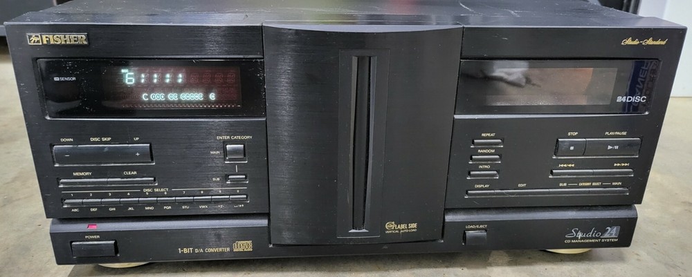 Fisher DAC-2403 Studio 24 CD Disc Player Changer - FOR PARTS OR REPAIR. It powers on, but the door does not open when the button is pressed, so we cannot test it any further. It is sold "as is" and for parts/not working. Does not include the remote control. We ship the same business day in most cases.
