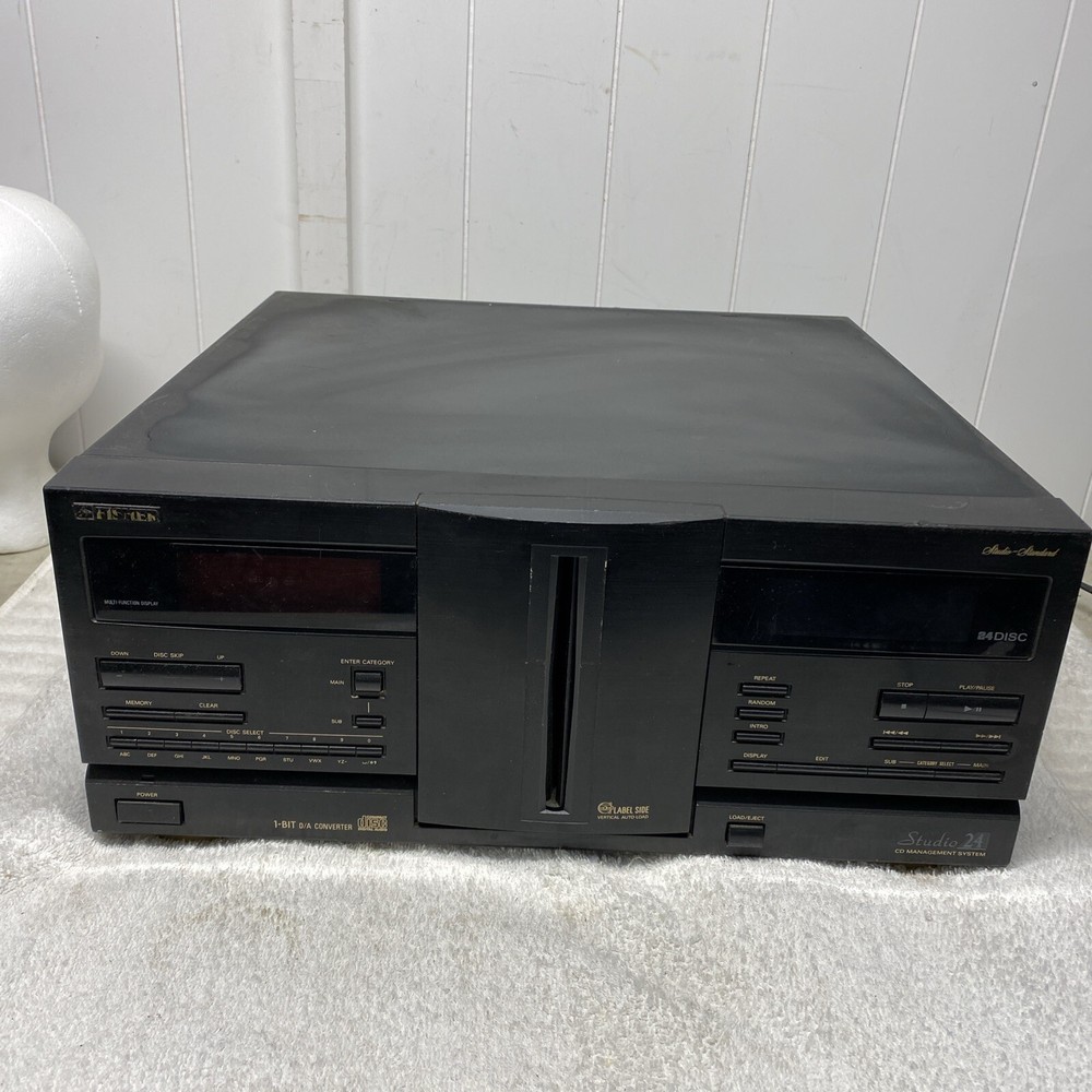 This Fisher DAC-2403 Studio 24 CD Management System Compact Disc Player is a great addition to any home audio setup. With a CD changer capacity of 24, it allows for hours of uninterrupted music listening. The stereo L/R RCA audio outputs ensure high-quality sound output. This product has not been tested, but it is sold as is. It comes in black color and was manufactured in Singapore. It is a CD player type and playable media format is CD. The item is branded Fisher and model number is DAC-2403. Purchase this CD player to enjoy your favorite music in a classic way.