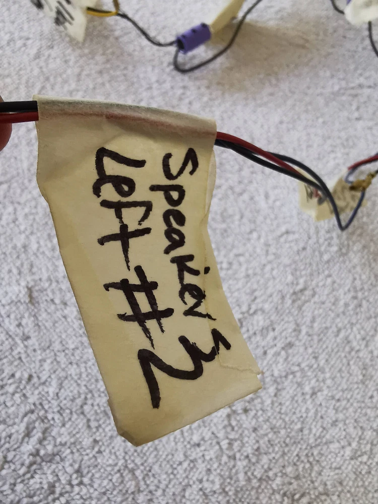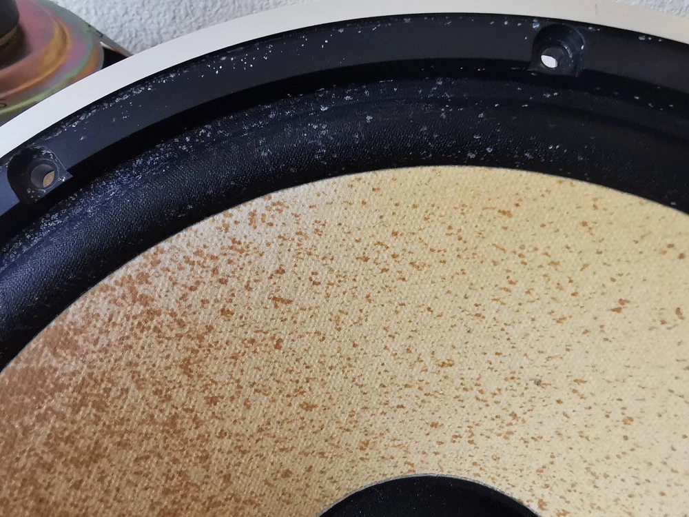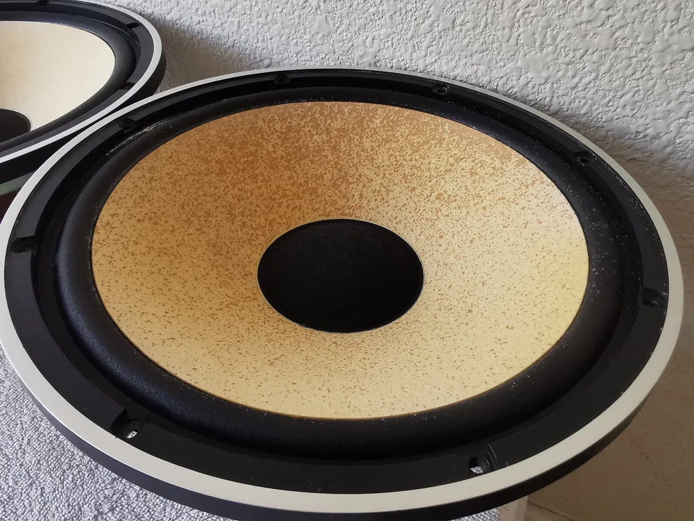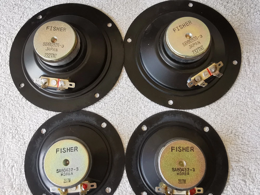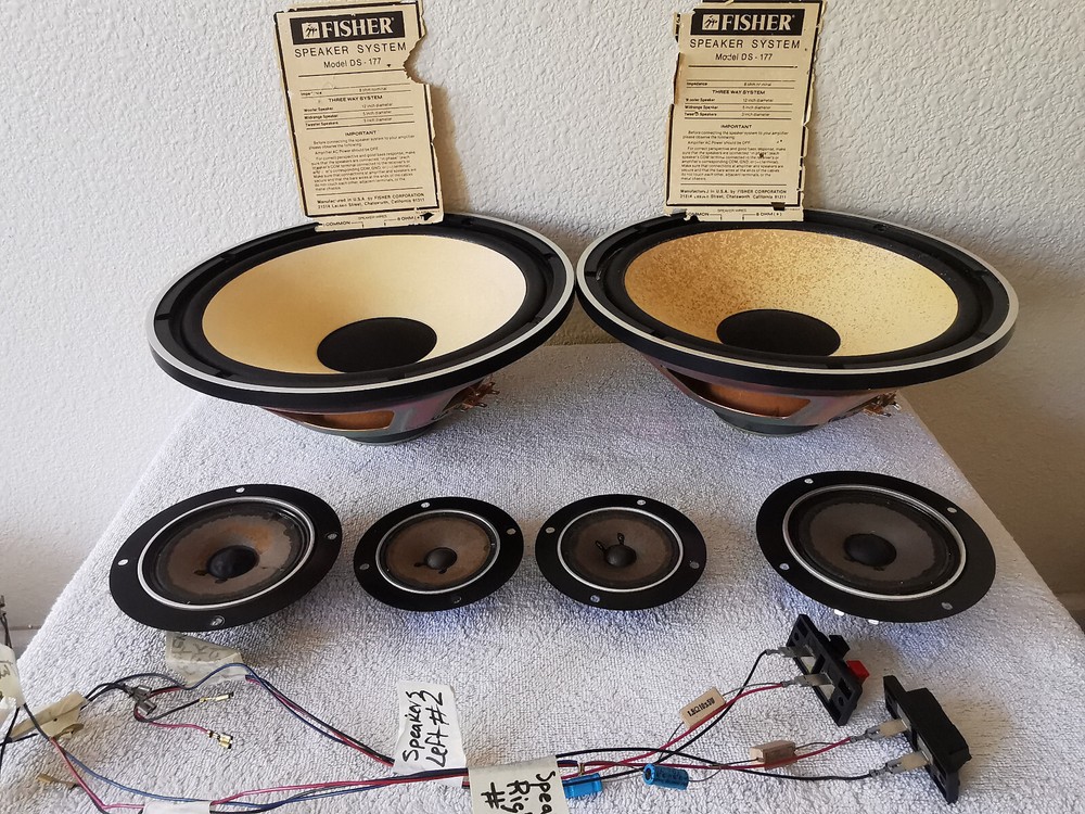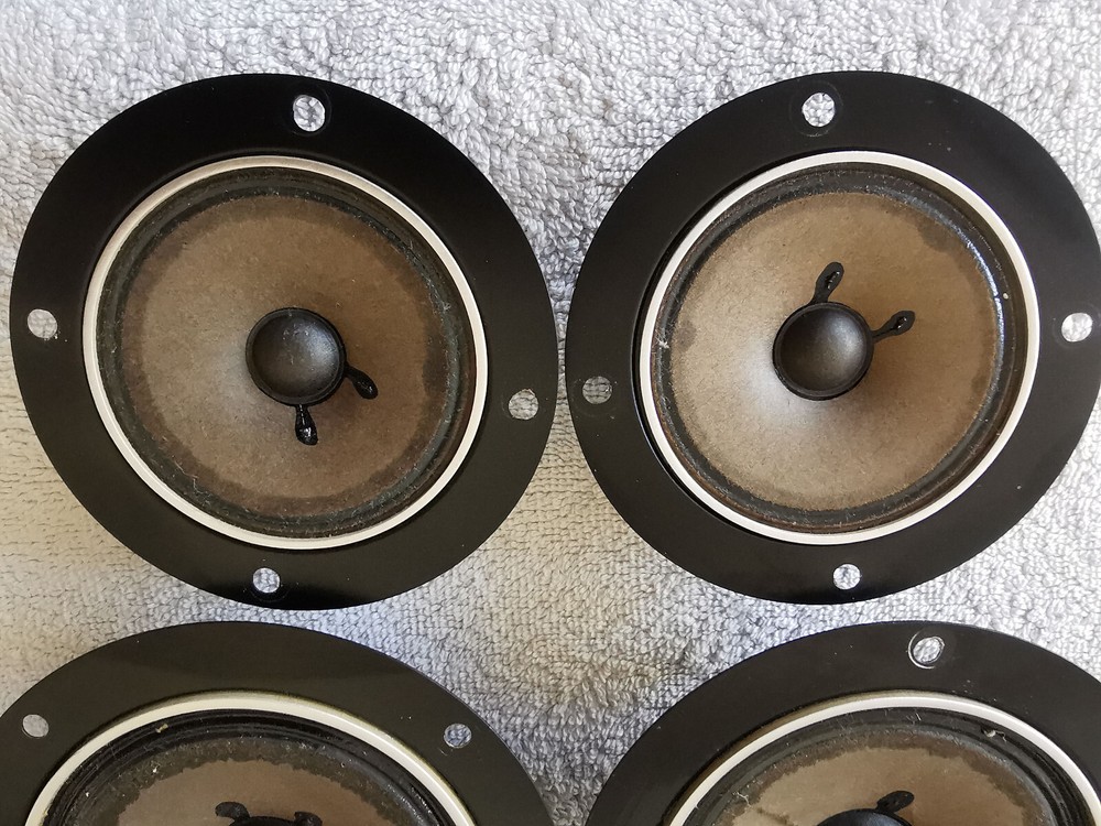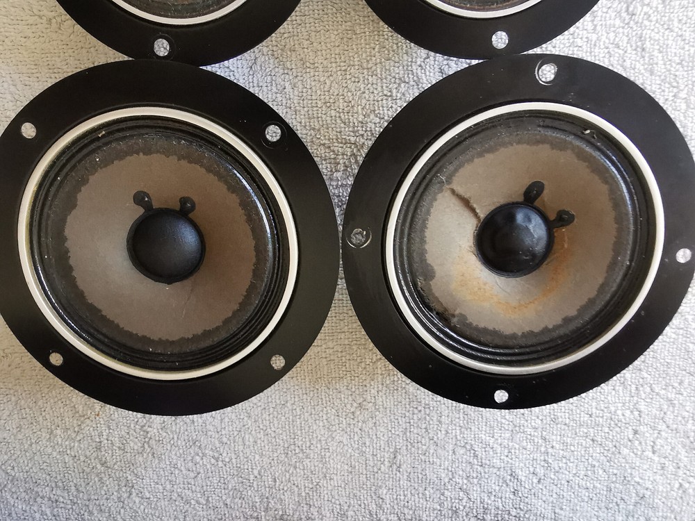 Comments, questions and offers welcomed! Please refer to the pictures and/or Item Condition Description(above) for condition of the item(s) The whole set sounds excellent, one mid-range is damaged but sounds good, one woofer has stains The crossover has indications on how the woofer, tweeter and mid-range lines should be connected.