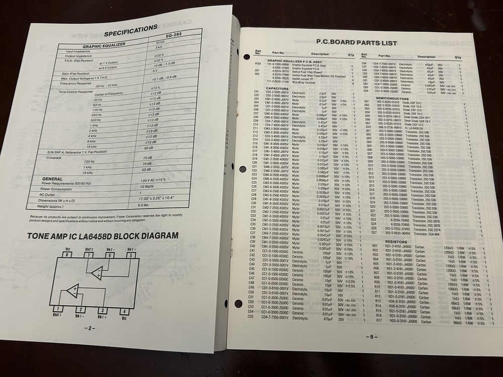 Fisher EQ-283 Vintage Graphic Equalizer Service Manual with OEM Diagrams