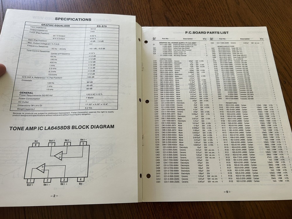 Vintage Fisher EQ-870 Graphic Equalizer OEM Service Manual with Repair Diagrams