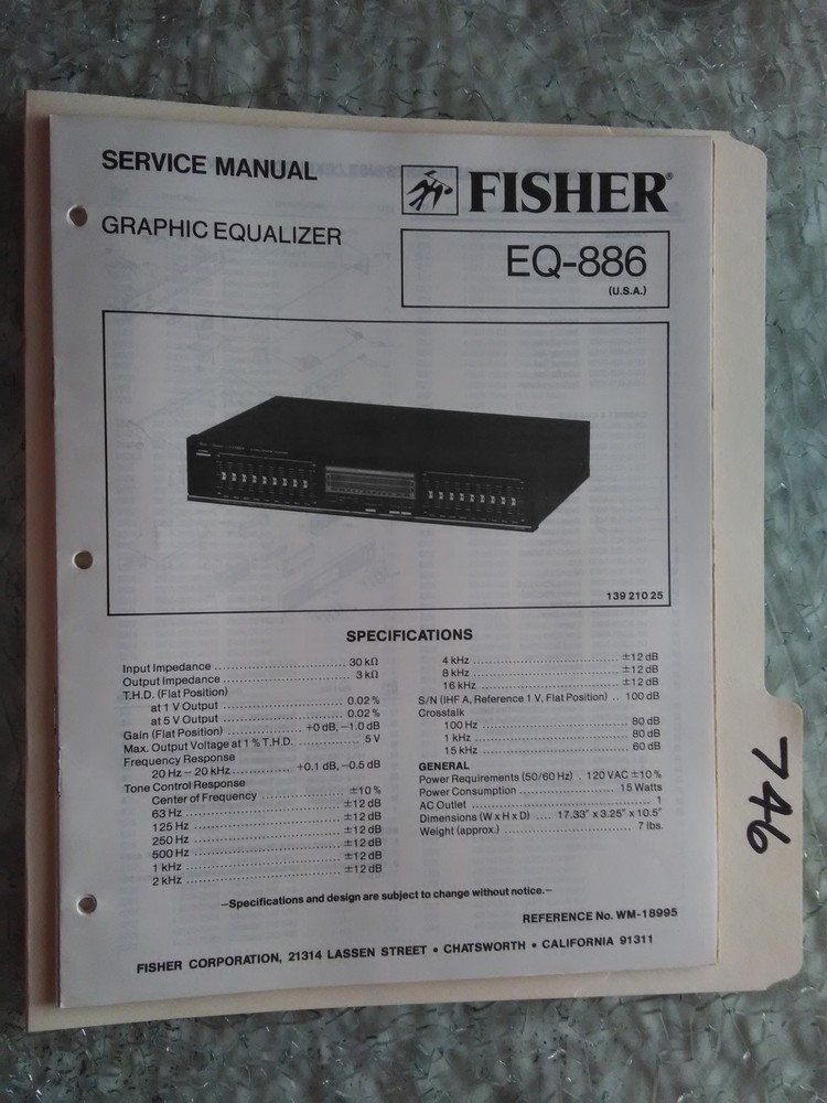 Fisher EQ-886 Original Service Manual for Stereo Graphic Equalizer Repair