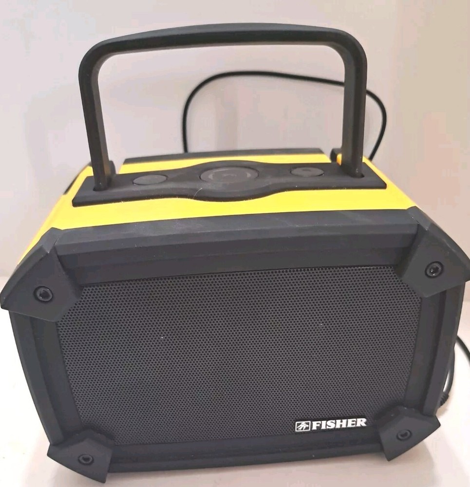 Fisher FBT960 Wireless Bluetooth Portable Speaker Yellow Rechargeable Shock Blast. Comes with the usb and rca cords.