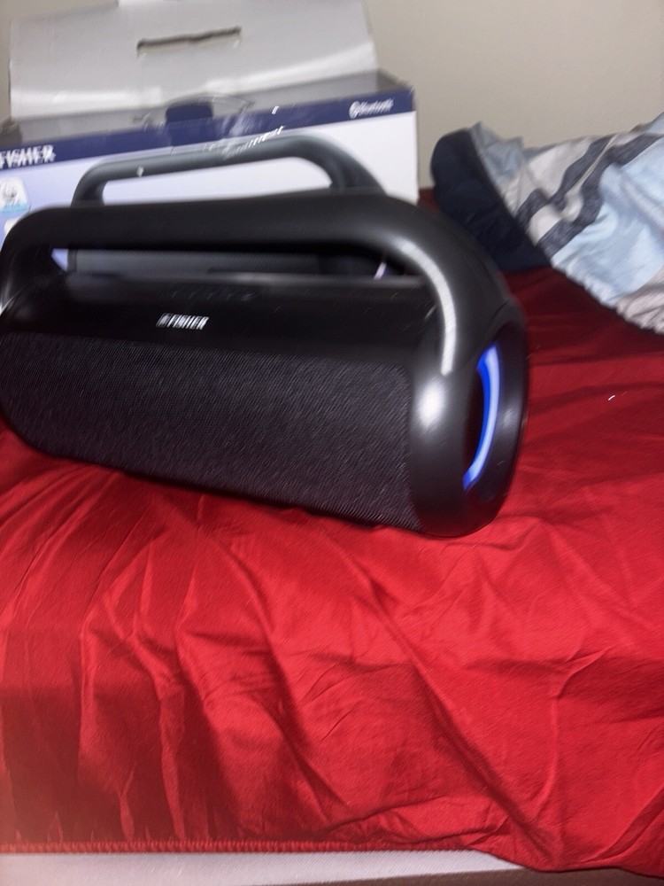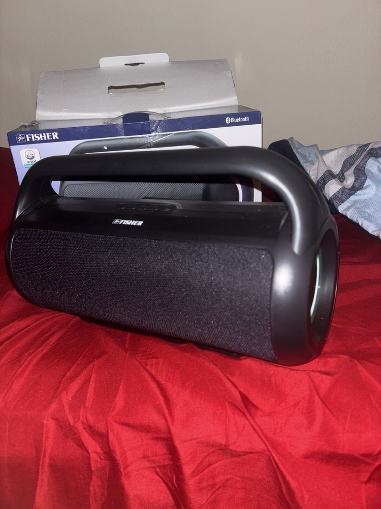 This Fisher LED Bluetooth speaker works perfectly and packs impressive sound for its size. The lights add a cool vibe, and it's practically new since it was only used twice. Just note it doesn’t include a USB charger, but if you have one, this speaker is a steal for the price. Great for parties or chilling at home!