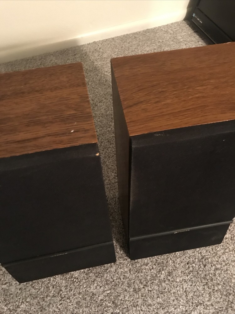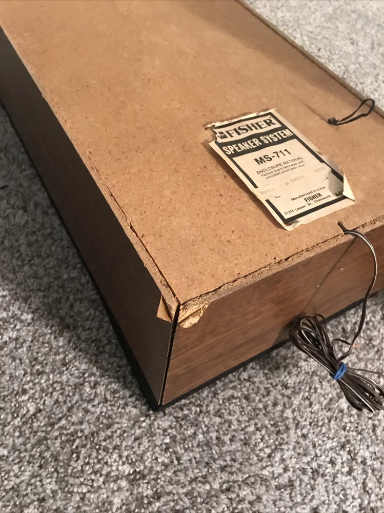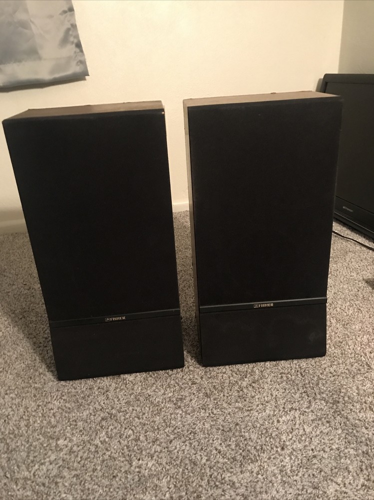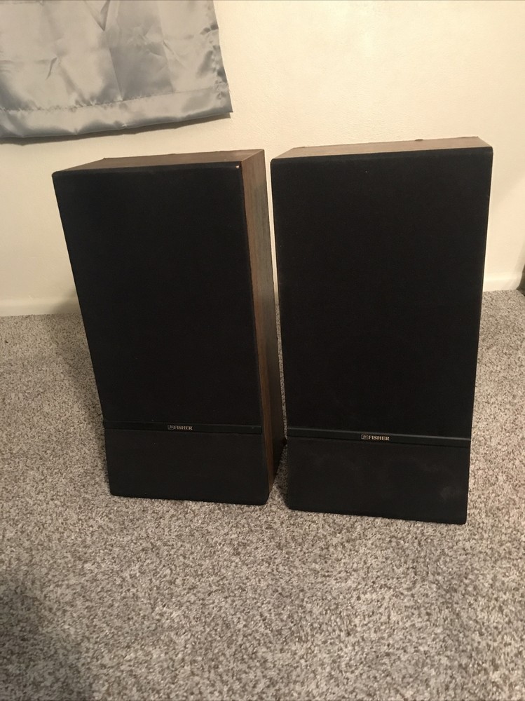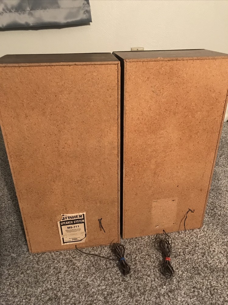 Fisher MS-711 Vintage pair Speakers sound great. Condition is "Used". Whether you're completing the original 630 system or to use as stand alone speakers, both provide a mellow rich sound that is so characteristic of the time period. Sold as-is, no returns. 20"T x 10" x 7". Shipped with USPS Or FedEx