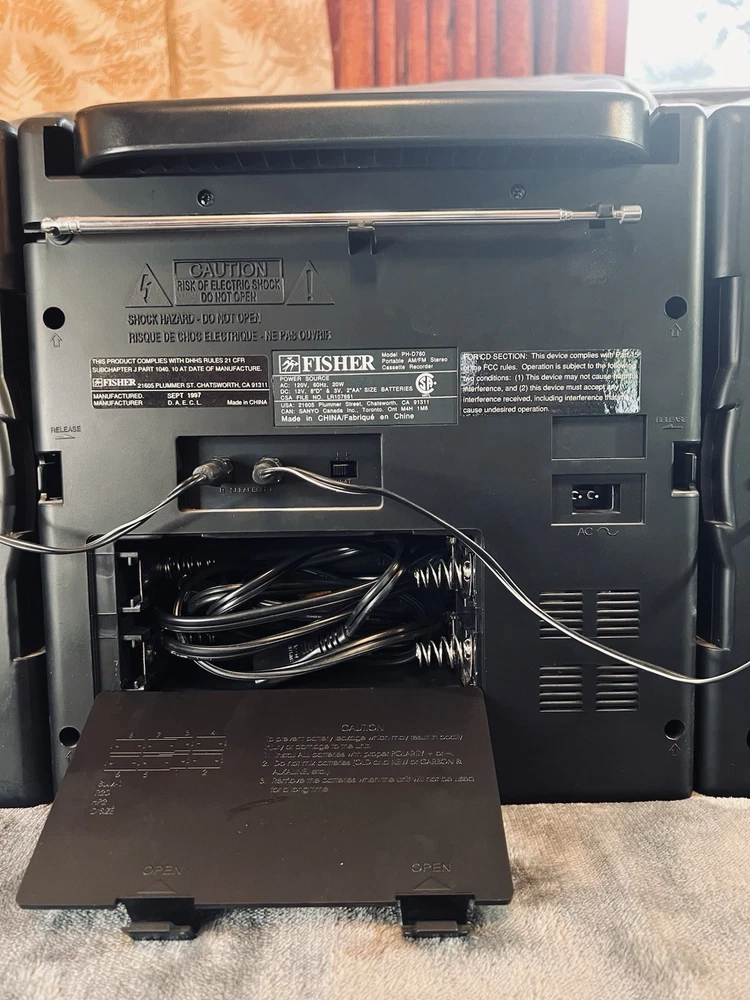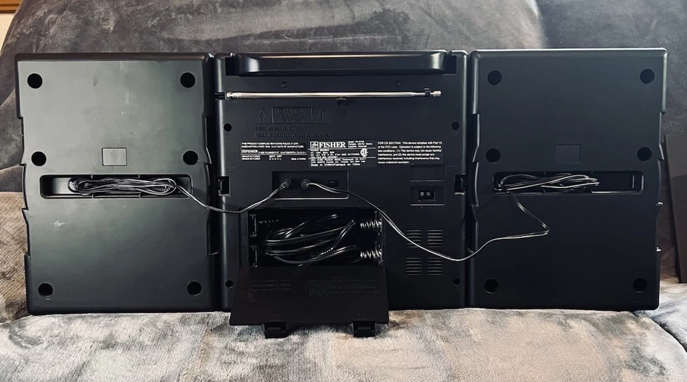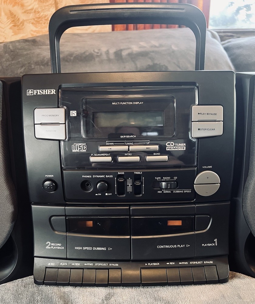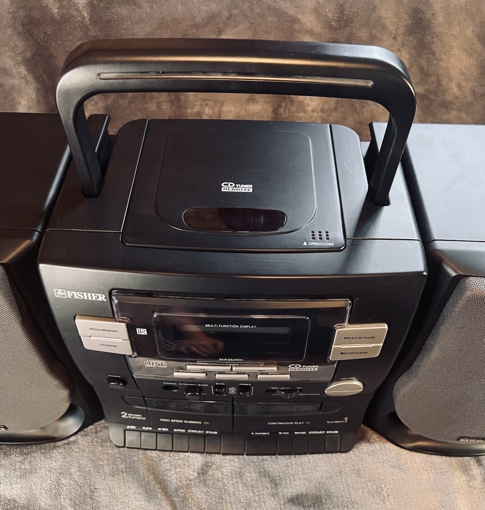 Looks and works like it was just pulled from the box! Looking for a classic boombox that delivers both style and functionality? Check out the Fisher PH-D640 Studio Standard BoomBox. With its sleek black color and timeless design, this boombox is a perfect addition to any music lover's collection. It features a CD player, cassette tape, and AM/FM radio, so you can enjoy your favorite tunes in various formats. This boombox also comes with a detachable speaker, making it easy to take your music on the go. Additionally, it has a headphone jack and raw cable speaker jacks for a customizable audio experience. Tested and confirmed to be in working order, you can't go wrong with the Fisher PH-D640 Studio Standard BoomBox.