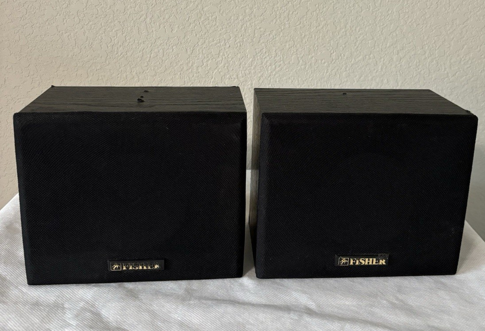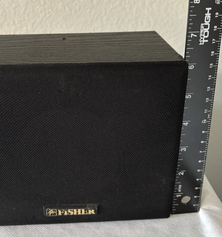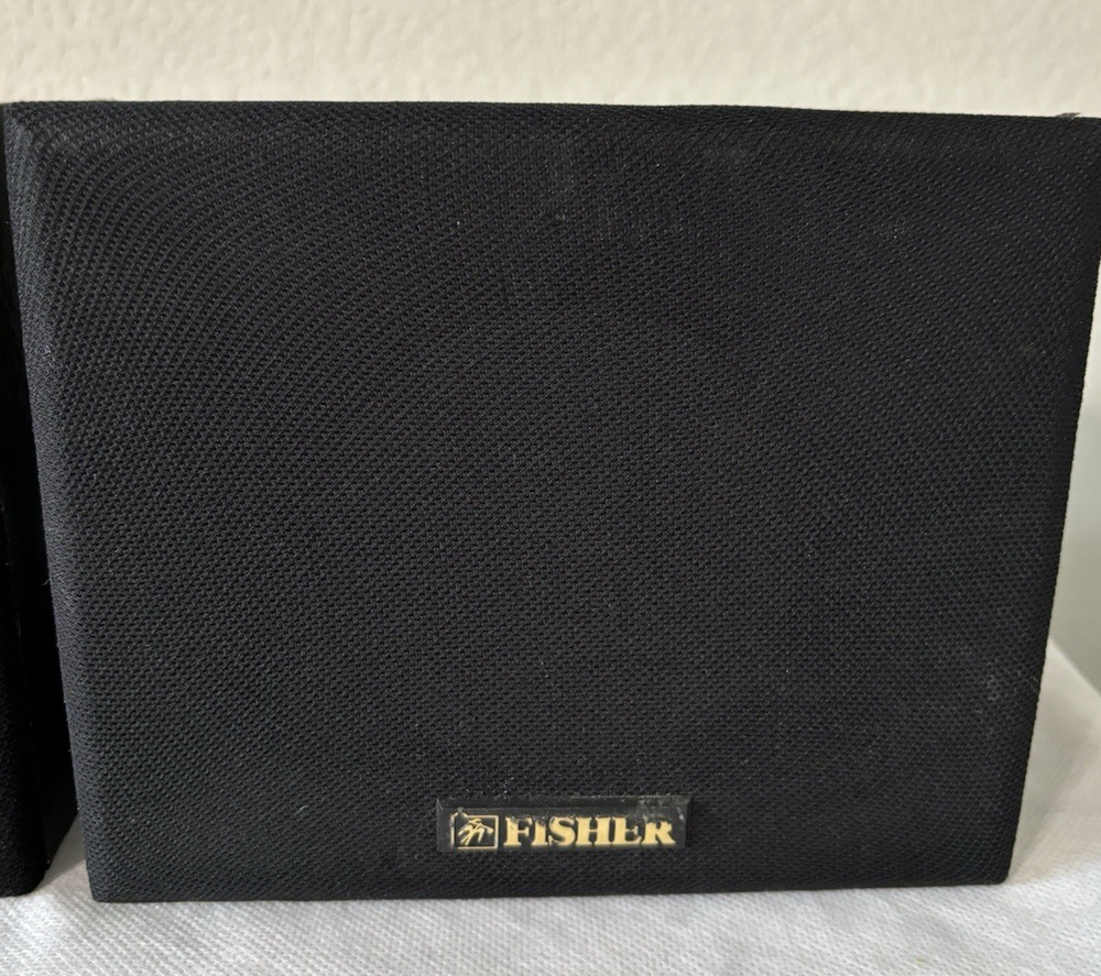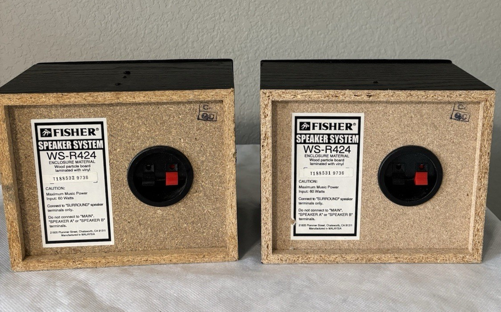 Elevate your audio experience with the Fisher Pair of Shelf Surround Speakers, model WS-R424. These speakers are designed to deliver a rich and dynamic sound that will enhance your favorite movies, music, and games. With a robust 60W RMS power, they are capable of producing crisp and clear sound that will immerse you in your media.The speakers feature a wired connectivity that ensures a stable and consistent signal transfer for high-quality audio reproduction. They come in a sleek black color, giving them a modern and sophisticated look that will complement any home entertainment setup. The rectangular shape allows for easy placement and integration into your existing decor. Whether you're a movie buff or a music lover, these Fisher shelf speakers are a perfect addition to your audio arsenal. They have been tested and sound great. There are a few blemishes. One speaker has one screw hole in the top. The other one has 3 screw holes in the top. Thet are about 1/8" in diameter, and do not affect the performance. Please view photos carefully.