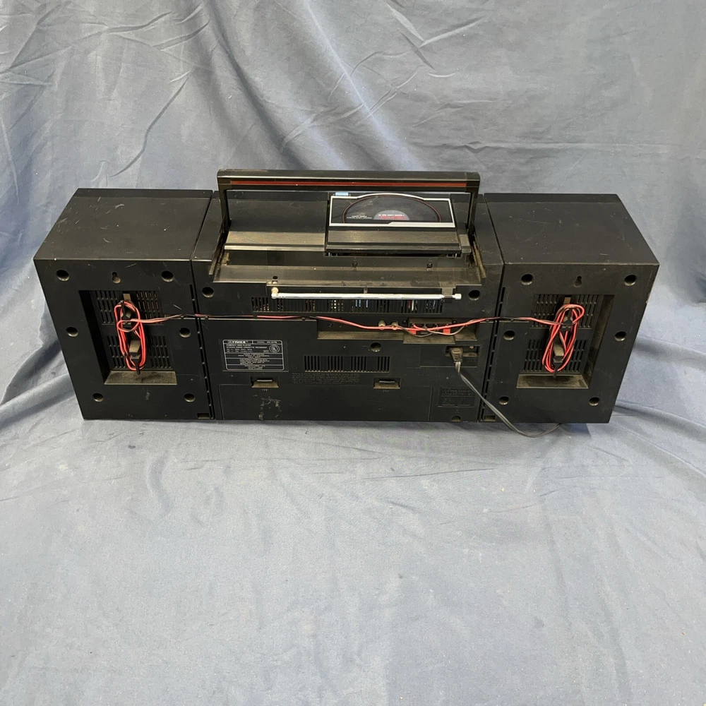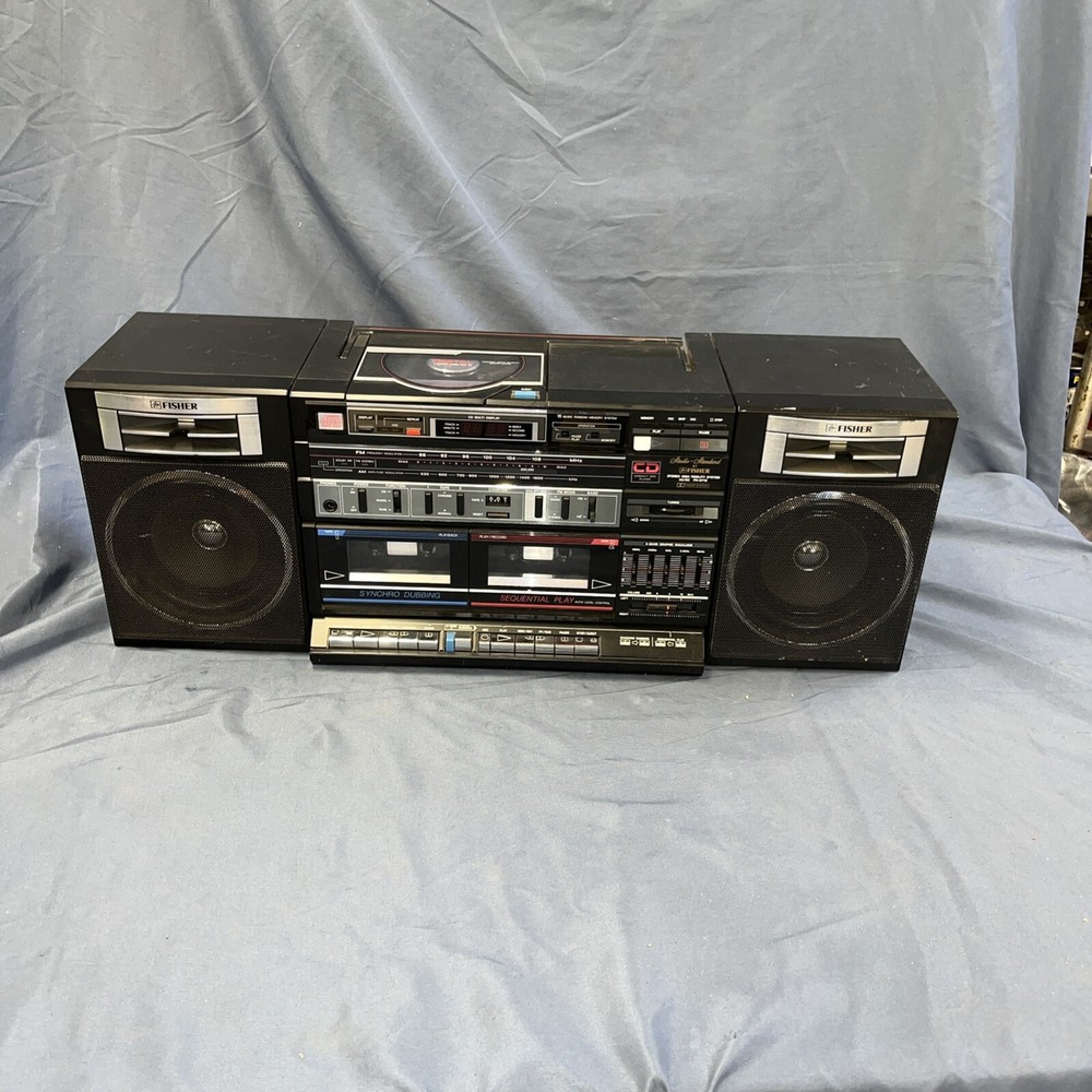 The Fisher Ph-d715 Studio Standard AM/FM Radio, Cassette and CD Player is a versatile boombox that offers a range of features for your audio needs. With its sleek black design and detachable speakers, this boombox is perfect for both home and on-the-go use. The CD player allows you to enjoy your favorite music, while the AM/FM radio provides a variety of listening options. Additionally, the built-in headphone jack and cassette tape player make it easy to enjoy your music privately. Overall, the Fisher Ph-d715 is a reliable and stylish option for your portable stereo needs. Item has been tested under ac power. Battery function not tested. Radio functions as expected. Cd player starts and spins, does not play. Neither cassette player works. Cassette and CD functions will need repair. Will be packed and shipped with care.