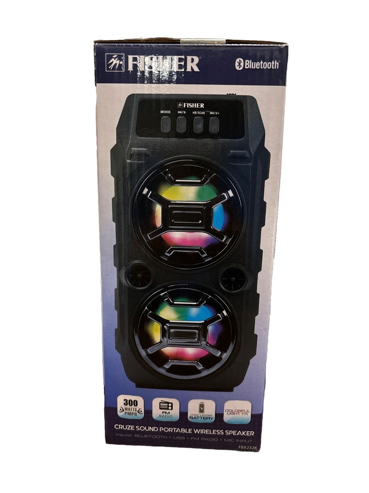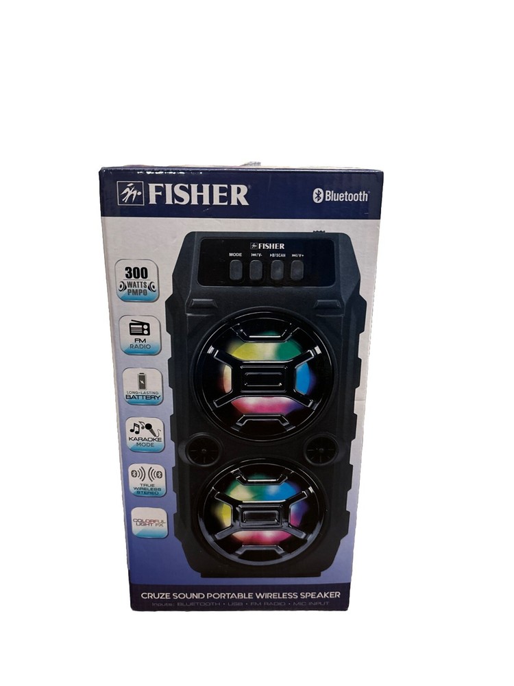 Fisher Portable Bluetooth Speaker LED. Condition is New. Shipped with USPS Ground Advantage.