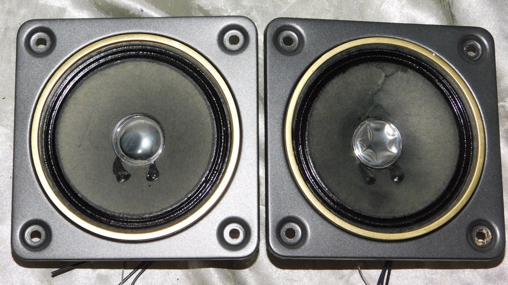 Fisher S80560-3 Midranges PAIR 4.75" Square flange, pull STV-410 Speakers varied conditions as shown but both tested and working will be well packed and insured....