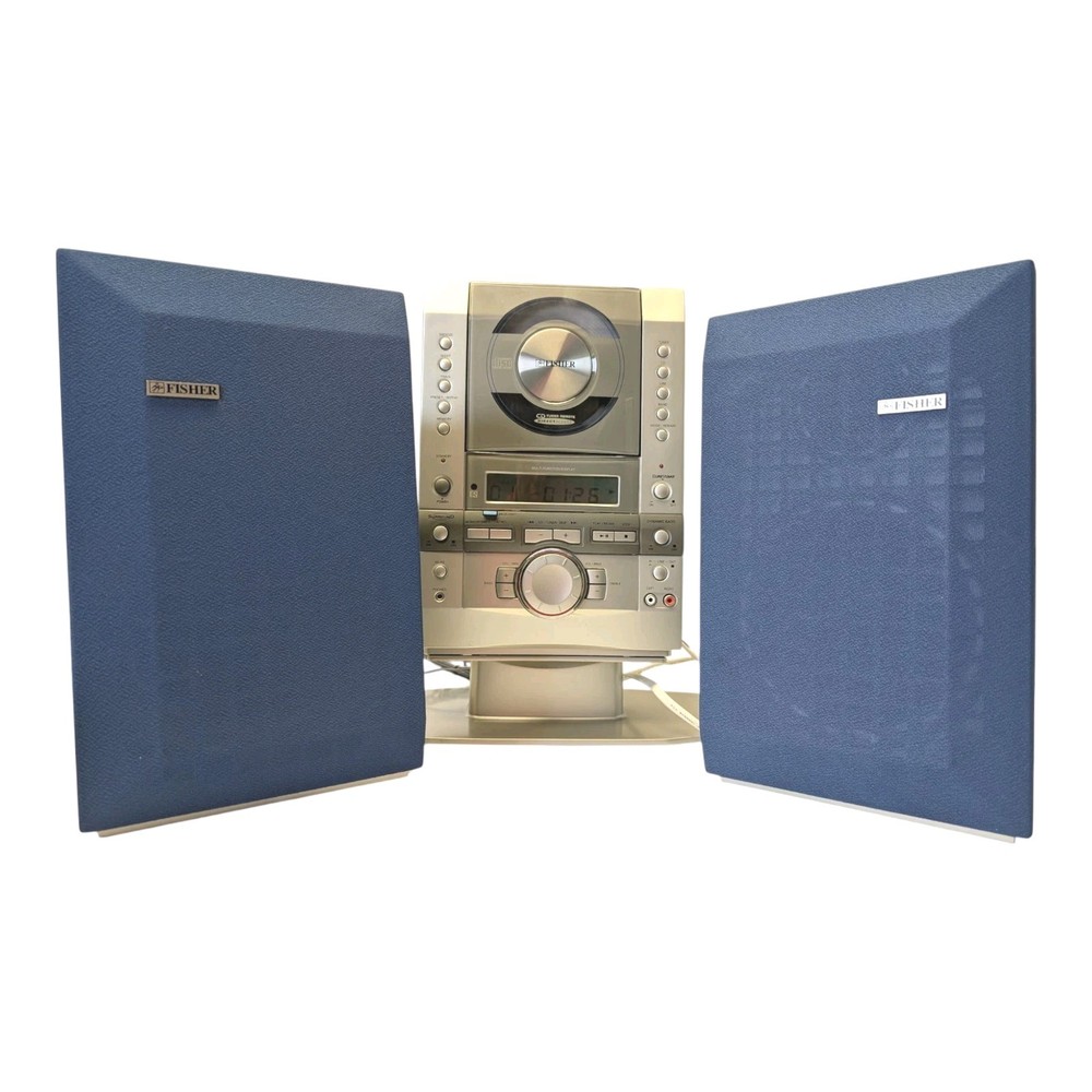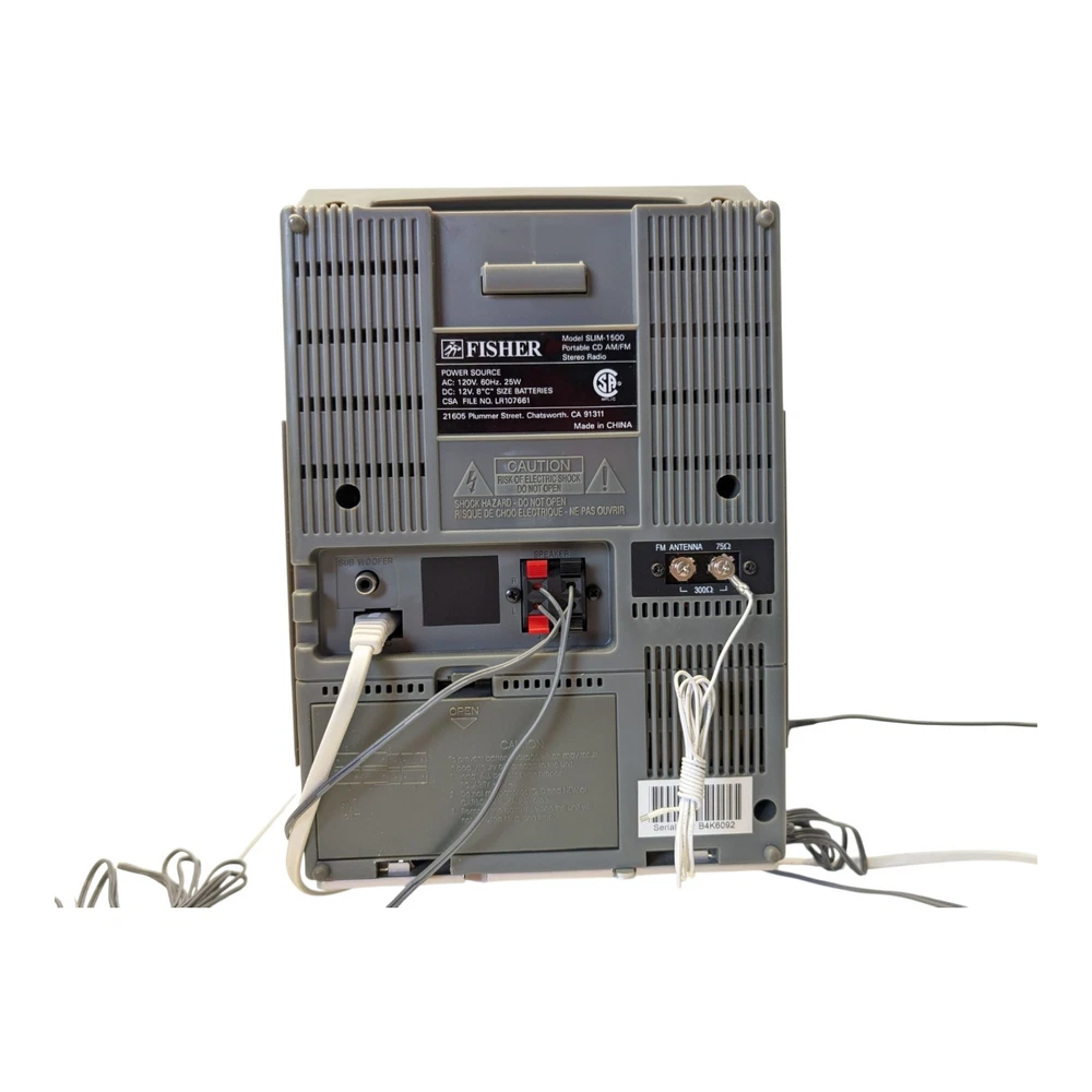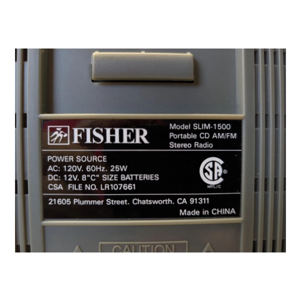 The Fisher SLIM-1500 AM FM Radio CD Player Stereo is a sleek and compact audio system that offers a variety of features, including detachable speakers, headphone jack, and raw cable speaker jacks for audio output. This model, part of the DIGITRADIO product line, plays CD media format and is ideal for home audio setup. With its silver color and AM/FM radio capabilities, this stereo system provides a convenient and stylish option for music enthusiasts.