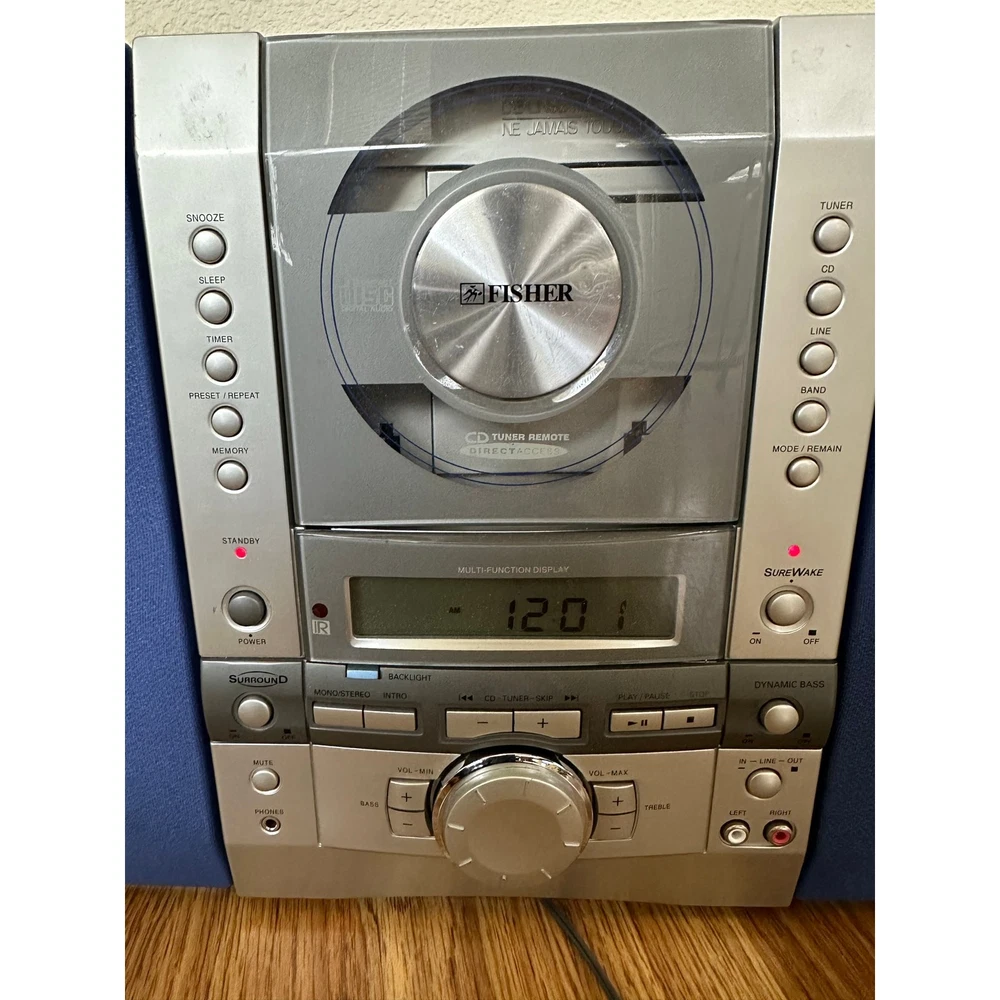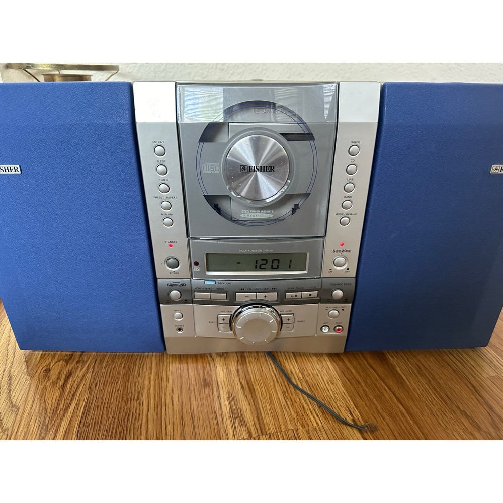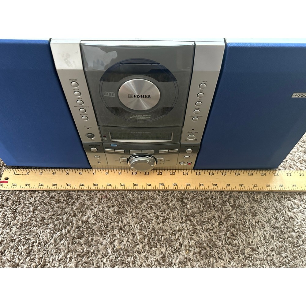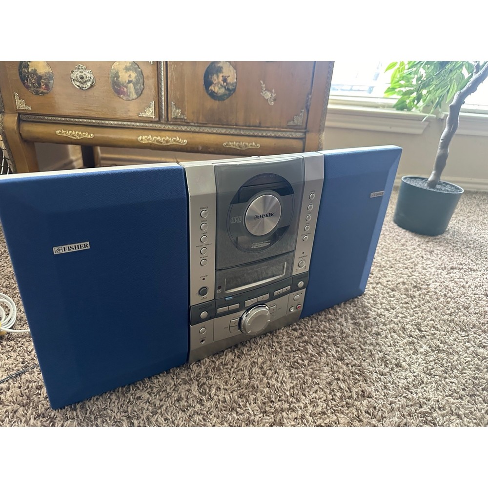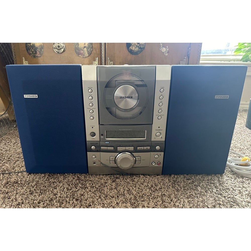 <![CDATA[<div>Bring back that old-school vibe with this stylish Fisher Stereo System – perfect for collectors, retro enthusiasts, or anyone who appreciates vintage tech. The Fisher Slim 1500 Executive Micro Music System CD is a compact and sleek CD player with a silver color. It features a CD changer capacity of 1, surround sound formats, and raw cable speaker jacks for audio outputs. This 1st generation model from Fisher's Executive product line includes a headphone jack for added convenience. Measures 21.5” x 11.5” x 3.5”. Features: • AM/FM radio tuner • CD player with motorized front panel Detachable Dual stereo speakers with rich sound • Sleep, timer, snooze, and memory functions • AUX input & headphone jack • Stylish silver-and-blue design with analog-style controls Condition: • Powers on and displays correctly (see photos) • CD tray opens and closes smoothly • Speaker wires are currently disconnected (see back photo), system is being sold as-is • Cosmetic wear consistent with age, but overall in good vintage condition A cool retro centerpiece for your music corner or vintage audio collection!