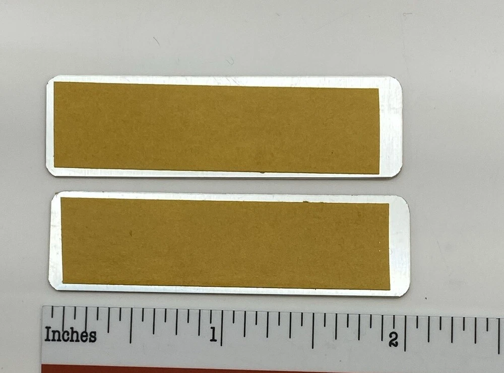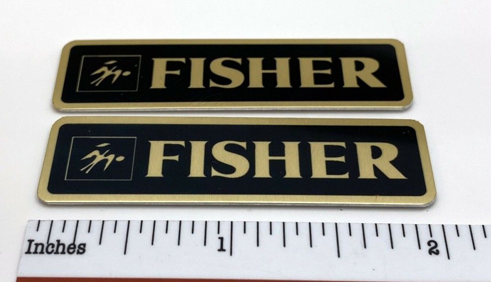Custom made replacement speaker badges for Fisher speakers. These are made of .02" sublimated satin gold aluminum and come with double-sided tape on the back for easy attachment to any surface. They measure approximately 2" by 5/8" as shown with rounded corners. The price is for one pair (two) identical badges. Free domestic shipping via USPS First Class mail (stamped envelope - no tracking) or choose USPS First Class small package with tracking for $4.00. International shipping via USPS First Class international letter (no tracking) is $2.00.