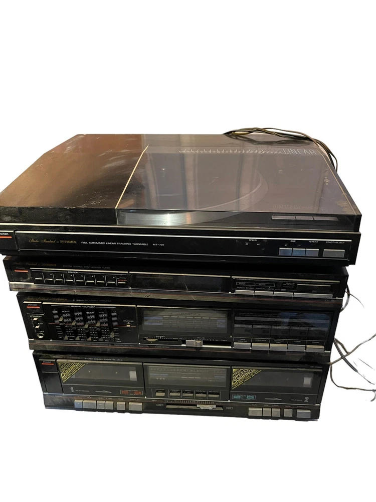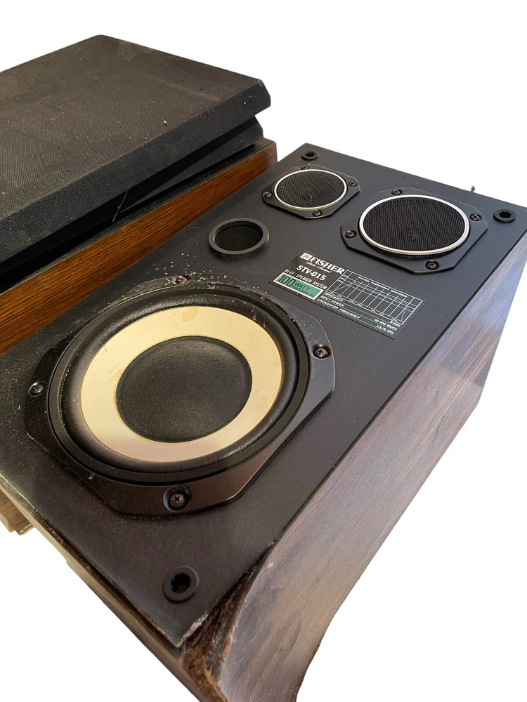 Fisher Stereo With Record Player And Speakers. The boxes for the speakers are falling apart so the buyer will need to replace the boxes. The speakers are STV-015....