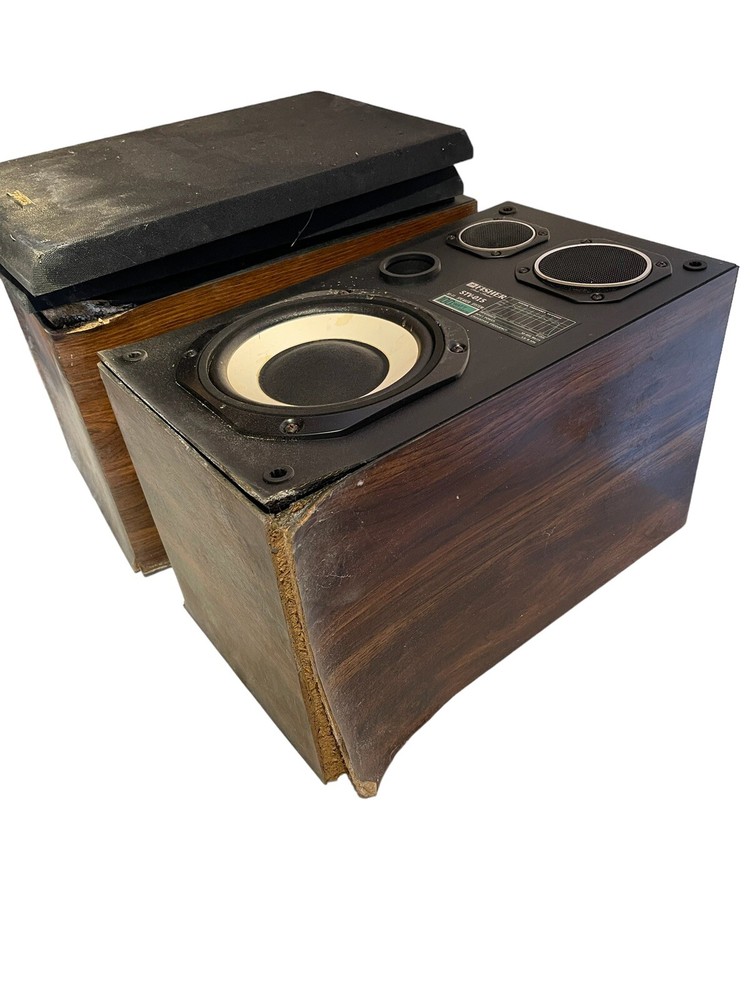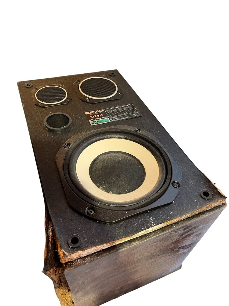Fisher Stereo With Record Player And Speakers. The boxes for the speakers are falling apart so the buyer will need to replace the boxes. The speakers are STV-015.