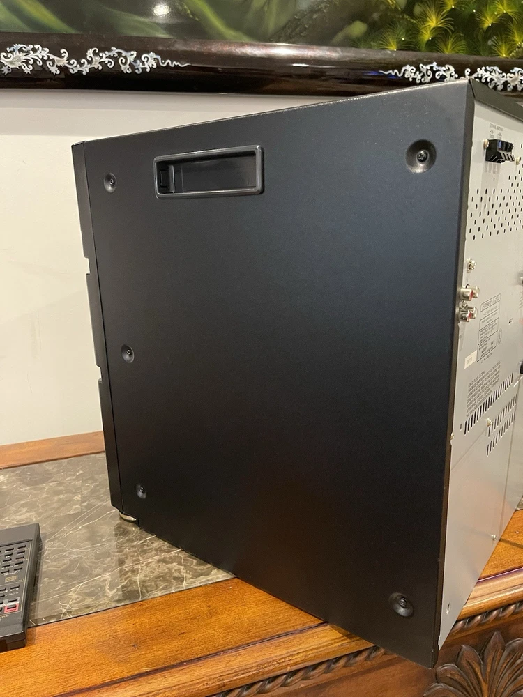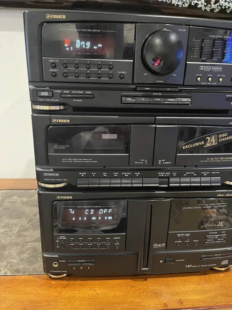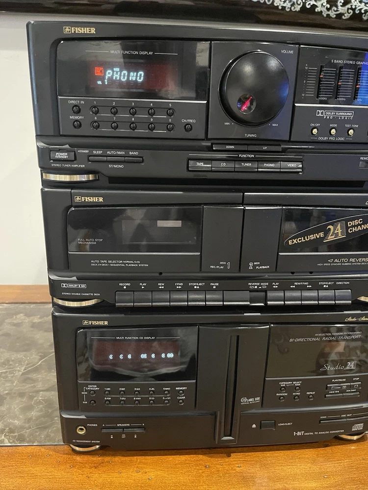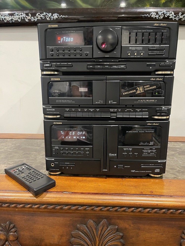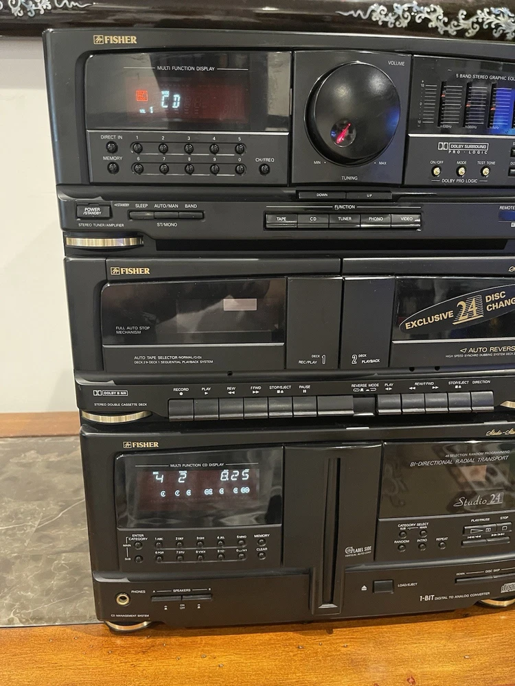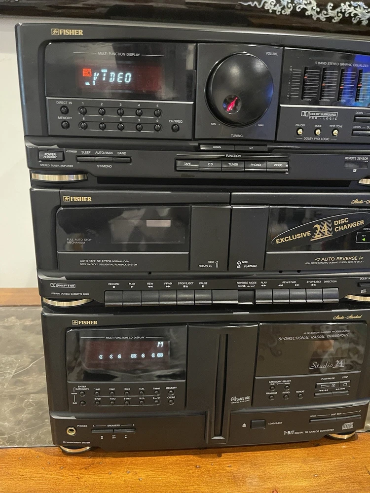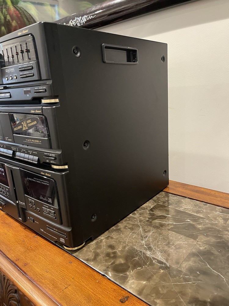 This Audio system looks like new, the remote control is brand new and working, the two cassette decks all work perfectly- Radio f/m a/m works great, But unfortunately the cd system has some problem so it doesn't work (CD Player gives error (m-error), and it has a long crack on the lower left corner in the front that has been Superglu welded (see picture) Speakers A and B channel working, other channels and other systems have not been tested. If anyone can We are only selling this for repair to perfection because it is very beautiful and quite rare. This System is very heavy it is about 42 Lbs and very large. Please excuse the small scratches here and there if any. Please look at all the pictures and details. Please read carefully and make sure you understand what you are buying. We always ship in two or three boxes and we ship the same day if possible (except Sundays as shipping companies are not open on Sundays) otherwise we ship next day Monday through Friday, maybe even Saturday. USA shipping only please. Please contact me at 904 6430240 for local pickup to view and inspect before payment. Hawall and Alaska please contact me for shipping costs before bidding. Thanks for looking!