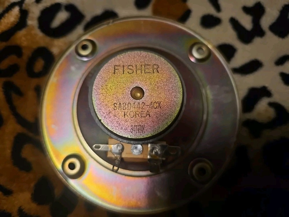 The Fisher Tweeter Speaker is a 4" OEM component specifically designed for Fisher DS-825 3-Way Speaker systems. This tweeter is compatible with Fisher brand products and serves as a vital part in delivering high-frequency audio output. It has been tested and confirmed to be in working condition, ensuring optimal sound performance when installed in the appropriate speaker system. Ideal for audio enthusiasts looking to replace or upgrade their tweeter component for enhanced sound quality.