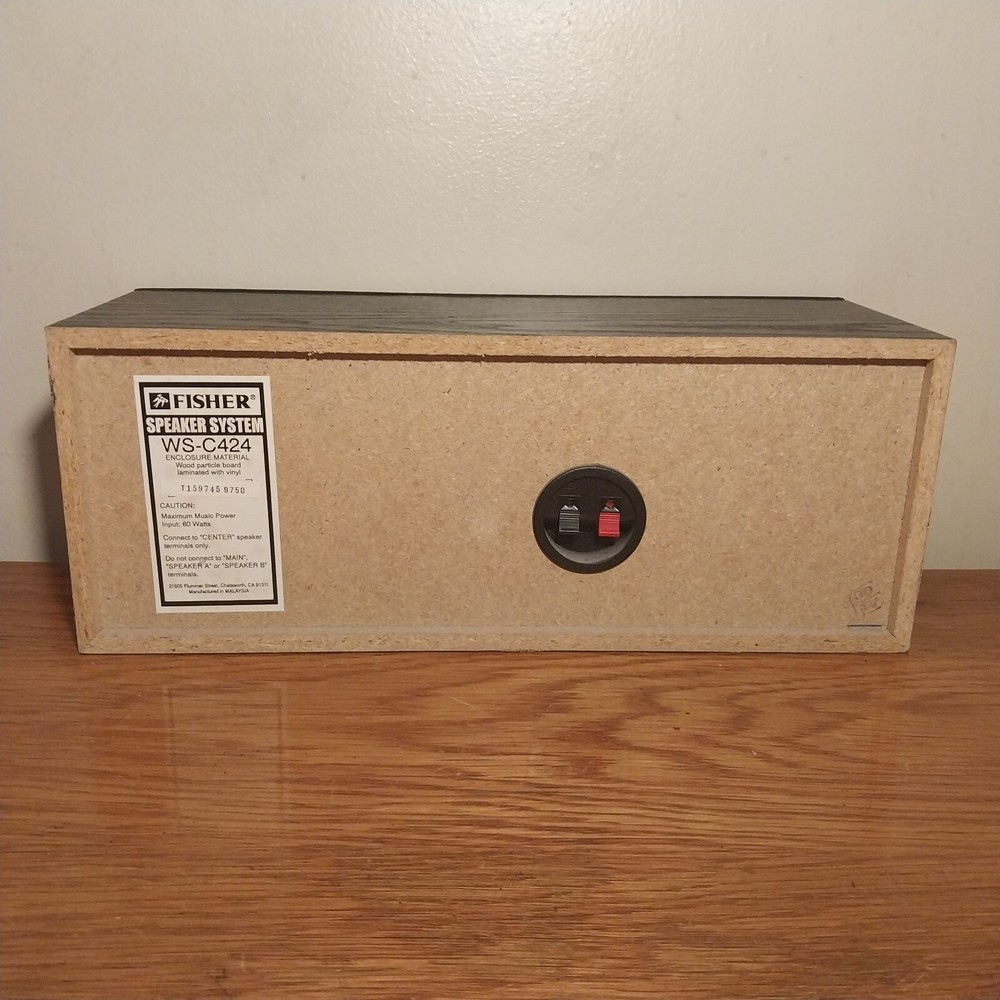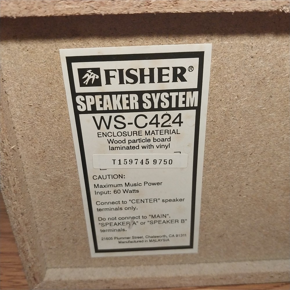 Pre-owned/used Fisher WS-C424 Center Speaker - Tested In Good Working Condition Transform your home into a cinematic experience with the Fisher WS-C424 Home Theater Speaker System. This rectangular-shaped speaker comes in black and is made of wood material. This speaker packs a powerful punch with an RMS power of 60W. Connectivity is made easy with the wired feature, allowing you to seamlessly connect to your TV, audio system, or any other device. The dimensions of the center speaker is 15 3/4" in length, 6" deep and 6/1/4" tall. It's compatible with Home Speakers & Subwoofers, Home Audio, TV, Video & Home Audio, and Consumer Electronics.