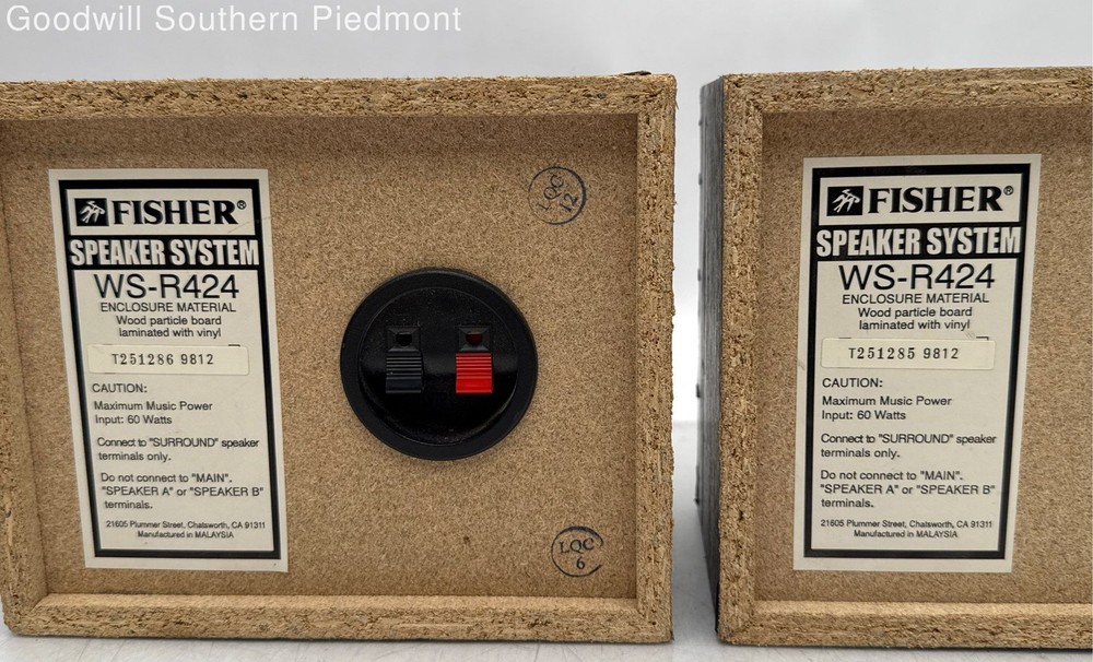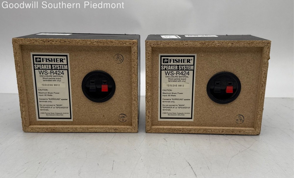 Commodity : Speaker System Brand : Fisher Model : WS-R424 Power : Powers On Reset : N/A Test : Tested Serial Number : T251286 9812 Power Cord : No This item is Tested and Functions Normally . Does NOT INCLUDE any additional items or accessories outside of what is shown in the product photos. Pre-Owned Item ; Has Cosmetic Wear. Refer to photos for cosmetic imperfections. Props, stands, or any additional object used to stage the item during photography is not included (i.e. Phone/Tablet stand, Head used for Headphones, etc.). All items are USED unless stated otherwise within the listing. Proceeds from the sale of these items fund job training programs, job search support, and family stability services that we offer free of charge to thousands of people in our community each year. Customer satisfaction is our top priority. In the event you experience any problems with your order, please contact us prior to leaving negative or neutral feedback and we'll be sure to resolve the issue. Disclaimers Payment Payment must be received within 4 calendar days of an item's end date, or your order may be cancelled without notice per eBay's Unpaid Item Policy. Orders must be paid for through eBay prior to pick up. Payment will not be accepted at the pickup location for any reason. Customer Service / Returns Customer Service Our eBay Customer Service Operation runs Monday to Friday from 10:00 A.M. to 5:00 P.M. Eastern Standard Time (EST). Messages, calls, and voicemails will be responded to in the order that they are received. If your message is sent outside of our service hours (10:00 A.M. to 5:00 P.M. EST) on Weekdays, Weekends, or Holidays we will respond to you within 24 hours on the next Business Day of Operation. Returns To initiate a return on a “New” or “Used” item, you must submit an inquiry (eBay Message), provide a photo of the issue, and go through a troubleshooting process with our Customer Service team. We do NOT accept returns or offer refunds of any kind for “For Parts” items. Shipping We ship using FedEx for Domestic (U.S.) Orders. International Orders are processed through the eBay Global Shipping Program. Please allow UP TO THREE (3) BUSINESS DAYS for your item to leave our facility after payment has cleared. A Business Day is defined as the days of the week between Monday and Friday and EXCLUDES the days of Saturday and Sunday. A Business Day EXCLUDES any Federal (United States) Recognized Holidays (Examples: Christmas Day, Thanksgiving Day, etc.) For example, an item purchased on Friday may take up until the following Wednesday to ship out. We strive to answer all inquiries, however inquiries regarding "Why hasn't ___ shipped?" that are not labeled as Overdue (meaning items that have exceeded the "within three business days” expectation set on each order) will not be prioritized. We do not offer Priority/Next-Day/Urgent/etc. Shipping. All orders ship within three business days in the order that they were paid for. Tracking Number(s) will be updated in eBay once items have shipped. We ONLY ship internationally through the eBay Global Shipping Program . We DO NOT accept third party shipping labels. We offer combined shipping on Auction Items upon request prior to payment - NOT ON BUY IT NOW ITEMS. Combined shipping is NOT offered on Buy It Now items . We do not ship to APOs or P.O. Boxes. A full physical address is required for shipment. No exceptions will be made. Failure to comply may result in your order being cancelled if a valid address is not provided.
