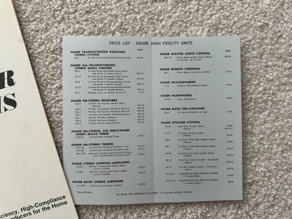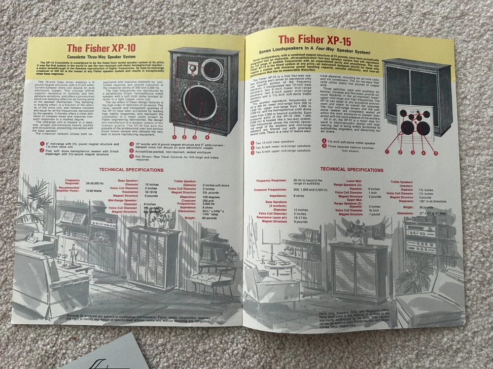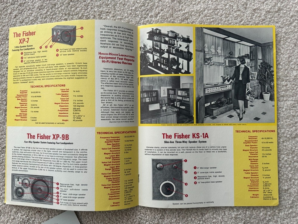 Fabulous mid-century modern example of sales collateral literature from the marketing wizards under Avery Fisher at The Fisher Radio Corporation in New York. Original (not a copy) copyright dated 1966. Great example of sales materials Advertising the value and consumer benefits of the full line of Fisher speakers of the era. Great coffee table exhibit and reading for the Fisher and Audio Collector to have. Very good condition, no folds, no damaged corners. Approximately 8.5x11. Will be packaged between layers of cardboard, and in protective plastic. The pictures are part of the description. Be aware vintage print materials, paper and ink may have odor. SHIPPING: I typically ship same or next day. Packing and shipping is expensive, and I am not Amazon Prime, so shipping is not free. BEFORE YOU BUY, READ CAREFULLY: Selling AS IS. No Warranty is expressed or implied. NO Returns or refunds for any reason. No after-sale support is implied or offered.