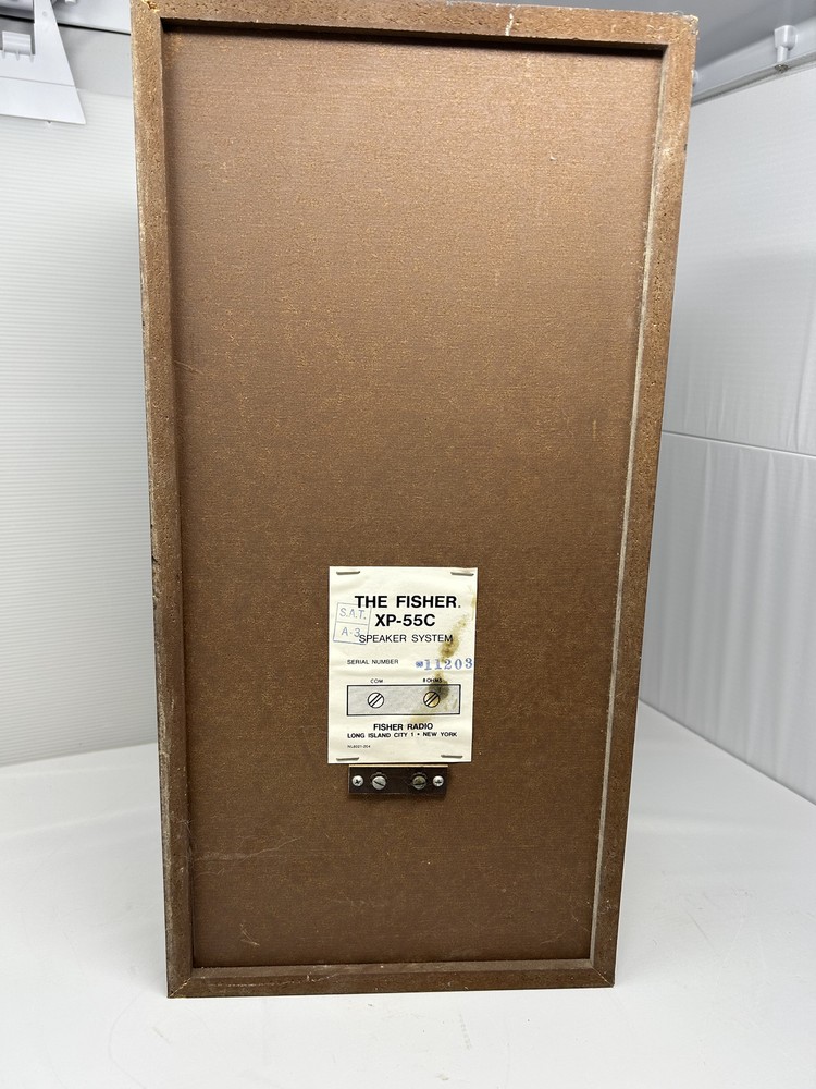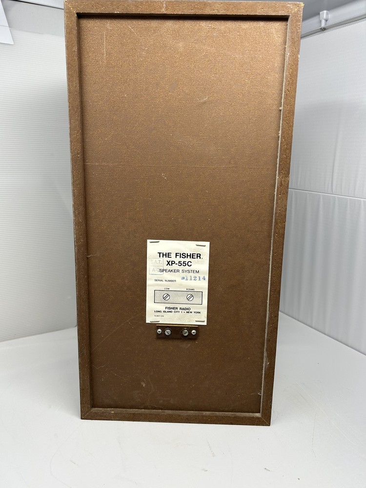 A pair of Fisher XP-55C speakers. wooden grill is intact and looks great. The speakers were tested for Ohm's and hooked to a Pioneer SX-205 amp for playability. Sounds great hate to give these up but I have to many speakers.