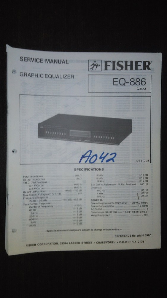 Shipped in a new mailer. Up for bid..... Original Printed Factory Manual. Picture of actual manual. Stock # written on cover. Very good used Condition. May have technician notes written inside. Manual is from our family TV and radio repair shop that closed in the early 90's. Stored in a climate controlled warehouse in filing cabinets for over 20 years. Please see Pic. $Free shipping in the US. Tracked USPS Media mail Shipment. I ship fast and pack with care! Please contact me with any questions. Thanks and Happy Bidding!!! AS-IS.