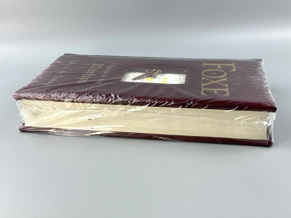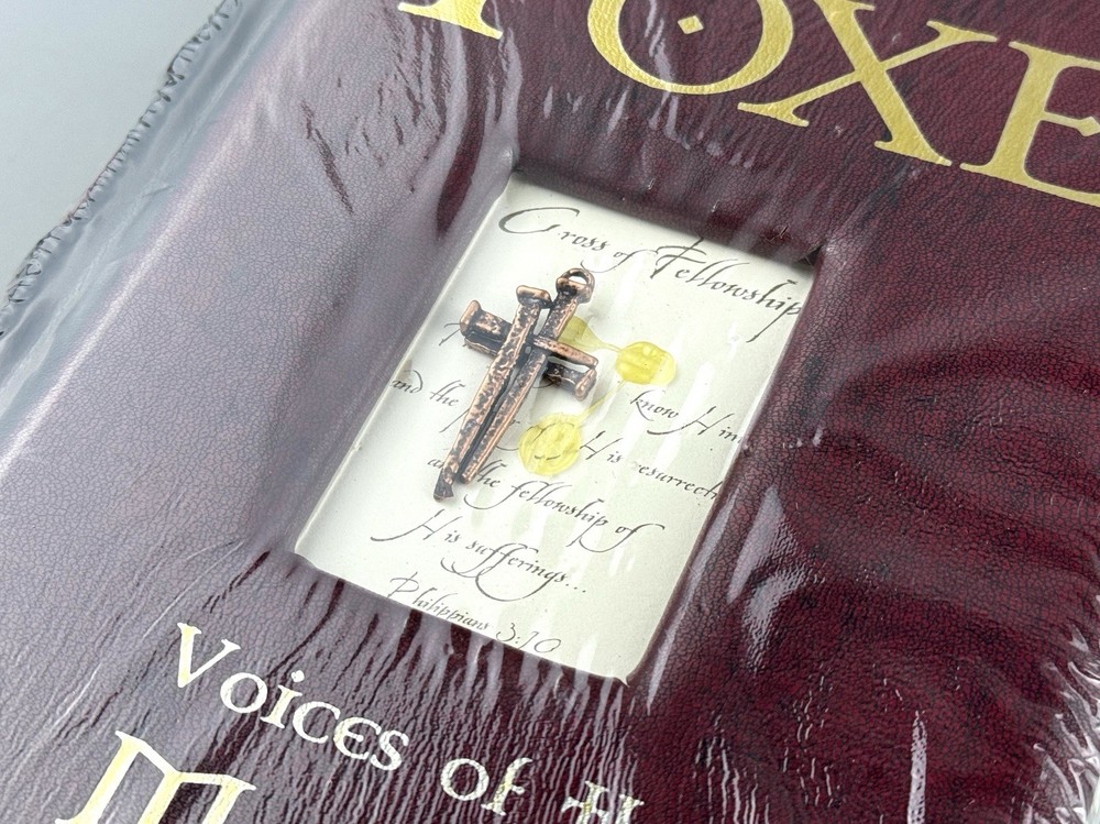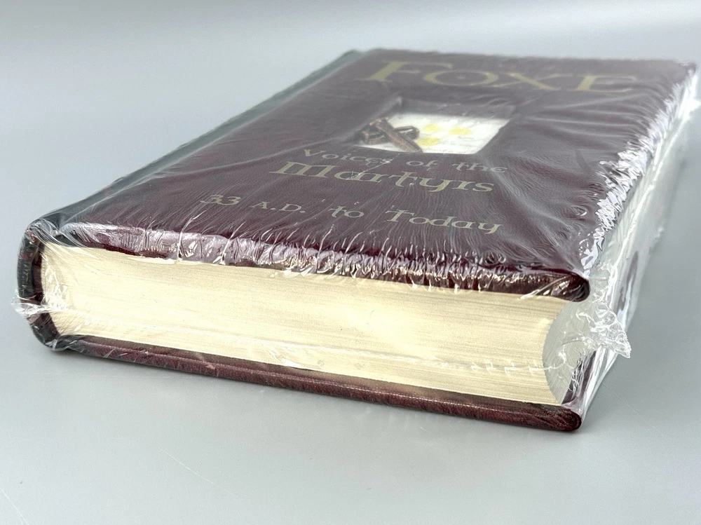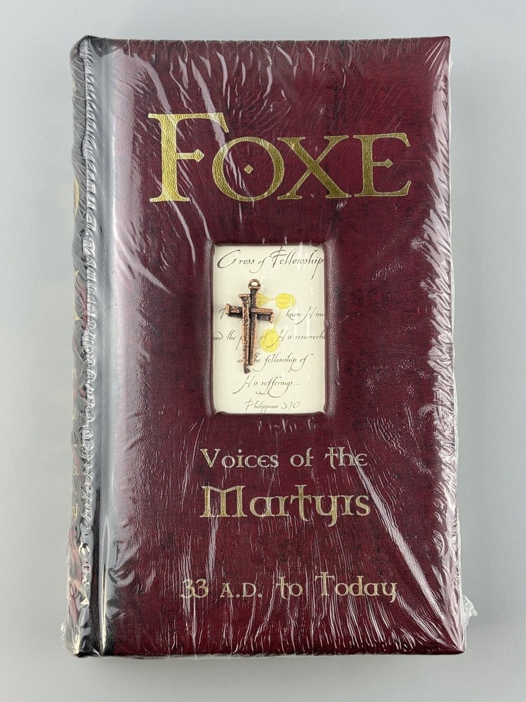 Foxe: Voices of the Martyrs 33 A.D. to Today by John Foxe (Special Edition, Faux Leatherbound) Sealed, though there is some signs of handling and the seal has some wear/tear and unfortunately the cross piece has come unglued as seen in the pictures. Can easily be re-glued once opened. See ALL pictures for more details! Ships in a padded box.