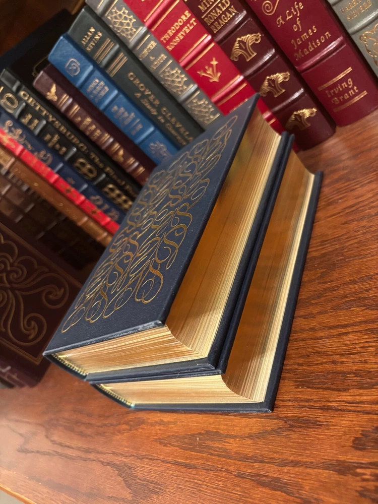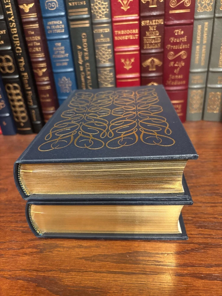 Easton Press(1985)full leather hardcovers, 22K gold accented, ribbed spine, decorated endpapers, ribbon marker, full color illustrations, book is in “Fine” condition, obviously unread and appearing unused, blank bookplates affixed to early blank page, 2 volumes, both with Notes.........(please see my many feedbacks for an idea of how I grade books and generally do business) (see my EBay store for the finest books & prices, many signed).......(No remainder marks or price-clipping)...............Always shipped in a box, well protected