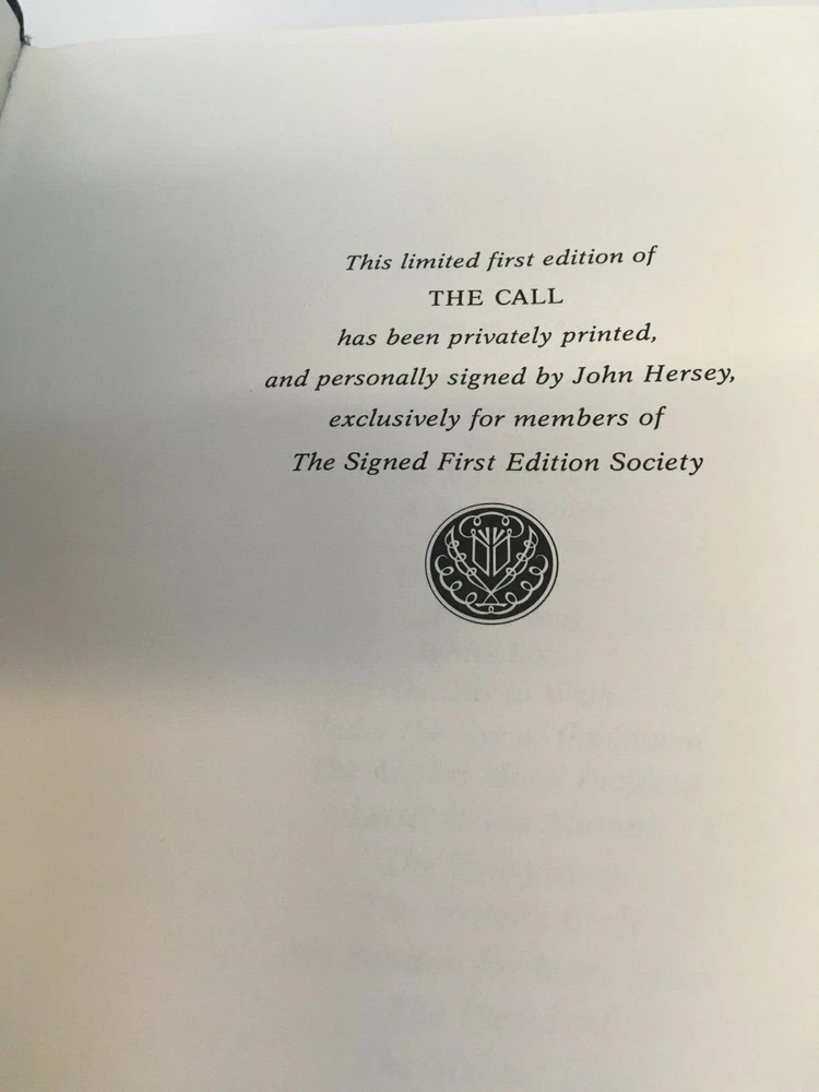 Delve into the pages of "The Call," a leather-bound limited edition from The Franklin Library, featuring the poignant fictionalized biography of presidential aide Ted Sizer by John Hersey. This first edition is a must-have for bibliophiles and collectors alike, presenting a unique blend of historical insight and narrative craftsmanship. Published in 1985, this collectible book is presented in English and boasts the distinguished handcrafted quality of The Franklin Library. With its elegant leather binding and the prestige of a first edition, this volume is not only a literary journey but also a fine piece for any connoisseur's bookshelf.