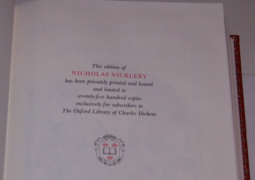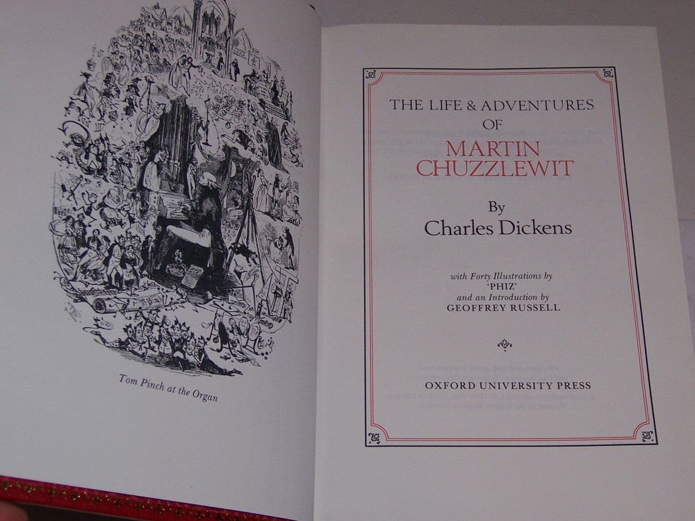 Books from Franklin Library / Oxford University Press Bound in premium leathers, distinctive cover design, hubbed spine accented in 22-karat gold Endsheets of marbled paper, permanent satin ribbon page marker Thread sewn pages for strength and durability, gilded page edges for beauty and protection Handsome readable typefaces, beautiful illustrations, archival-quality acid-neutral paper TITLE Life and Adventures of Martin Chuzzlewit AUTHOR Charles Dickens MORE DETAILS Black leather author-title label on spine black decorative leather patched over rich red leather board, and inscribed by a gilt cameo in oval measured by 5 3/4" by 8 1/2" This special edition has been privately printed and bound and limited to seventy-five hundred copies exclusively for the subscribers to The Oxford Library of Charles Dickens with forty illustrations by 'PHIZ', an introduction by Geoffrey Russell DESCRIPTION Like new condition, unread, clean inside, tight hardcover binding SHIPPING Books will be packed safely, and shipped via USPS Media Mail with tracking number.