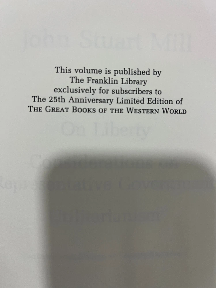 Political Writings by John Stuart Mill Franklin Library The Great Books of the Western World Series Excellent Condition! New Books get listed daily !!! 100s of Easton Press and Franklin Library books available!! All books get cleaned with a leather cleaner to remove any dust, odor and restore the beauty of leather!! Combined Shipping Discount: USA buyers - every book $1 off International combined shipping: 1 or 2 books - $45 3 or 4 books - $75 5 + books $17 per book 10+ books $13 per book WE SHIP DAILY!! RETURNS: Hassle-Free 30-days return policy and we pay for a return !! Check our Inventory (Link to eBay Store): http://stores.ebay.com/EastonFranklinBooks