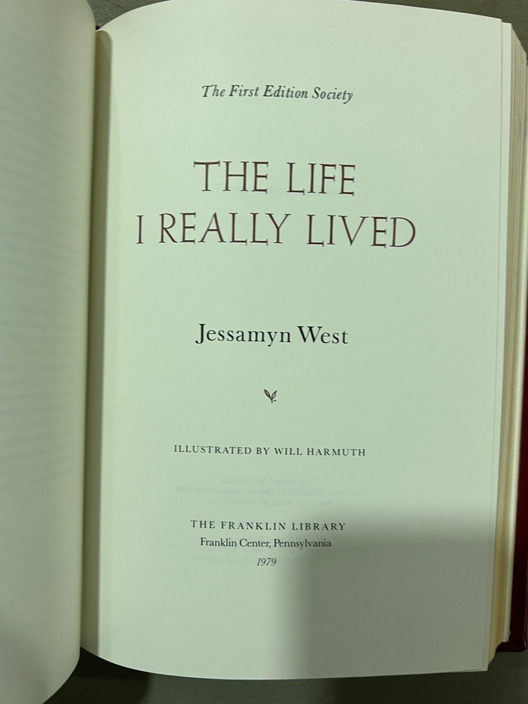The Life I Really Lived by Jessamyn West Franklin Library Limited First Edition Society Books Series Very Good Plus Condition ! New Books get listed daily !!! 100s of Easton Press and Franklin Library books available!! All books get cleaned with a leather cleaner to remove any dust, odor and restore the beauty of leather!! Combined Shipping Discount: USA buyers - every book $1 off International combined shipping: 1 or 2 books - $45 3 or 4 books - $75 5 + books $17 per book 10+ books $13 per book WE SHIP DAILY!! RETURNS: Hassle-Free 30-days return policy and we pay for a return !! Check our Inventory (Link to eBay Store): http://stores.ebay.com/EastonFranklinBooks