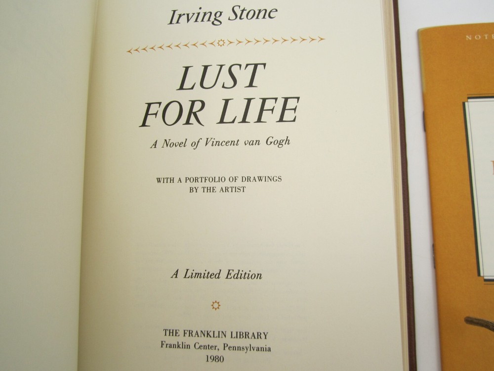 UP FOR SALE IS A VERY NICE LOOKING BOOK ALONG WITH THE COMPANION NOTES FROM THE EDITORS BOOKLET. The Collector's Library of The World's Best-Loved Books Published by The Franklin Library Title: Lust for Live Author: Irving Stone Published: 1980 This beautifully crafted, genuine leather-bound book is from a large collection of The Franklin Library’s 100 World’s Best-Loved Books. Please see our other listings for more books from this limited collection. Shipping: Rest assured, these items will be meticulously packaged to ensure their safe and secure delivery to their new owner. Please see our other listings. We will gladly combine shipping! ---------------------------------------------------------------------------- Before offering the item for sale we try our very best to find out as much information about the item so that we can give you an accurate description. Opinion on the items condition can vary, depending on the person who is looking at it. This is why we provide professionally taken, very large, clear and detailed photographs of the item from all angles. We depend on you to take your time to read the description, study the pictures carefully and to ask questions to satisfy yourself that the item is up to your expectations before bidding. If you have any questions regarding the item, simply contact us through ?ask seller a question? at the top of the page and we will try our best to answer as soon as possible. THANK YOU VERY MUCH!