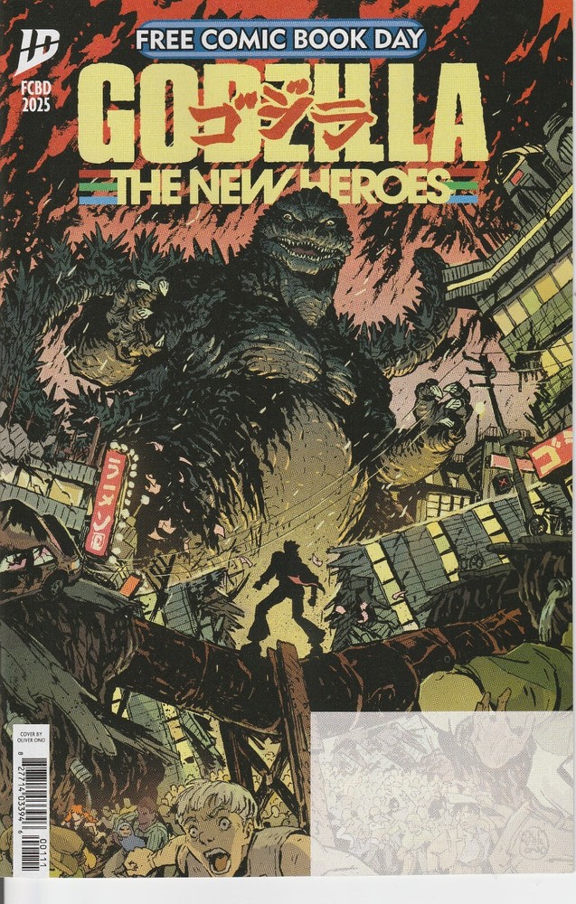(W) Various (A) Various The FIRST LOOK at IDW's new Godzilla universe. In July 2025, a bold new Godzilla story is coming...but you can get your first look here! Godzilla: The New Heroes FCBD 2025 features an original ten-page prelude to the new IDW Godzilla continuity, as well as preview pages for other books set in the new Godzilla shared universe. Each of these books is a fresh exploration on what it means to be a Godzilla comic-from a group of mercenaries that fly through space in Mechagodzilla to a strange wasteland inhabited by a half-kaiju, half-human freak, to a bold superhero take on G-Force. A new era of Godzilla comics starts here! Exclusive Original Material Rating: Teen