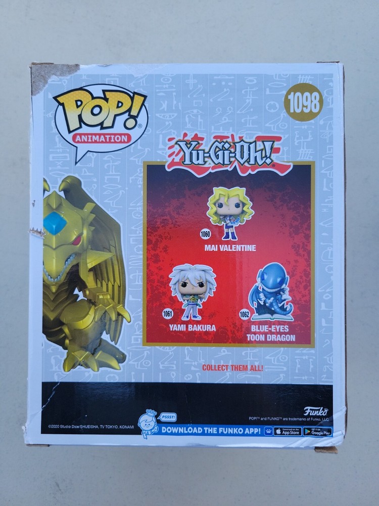 Funko POP! Animation Yu-Gi-Oh Winged Dragon of Ra Metallic GameStop Exclusive. Please view pictures before purchasing. The pictures show the exact product you will receive. The box is damaged. Any que...