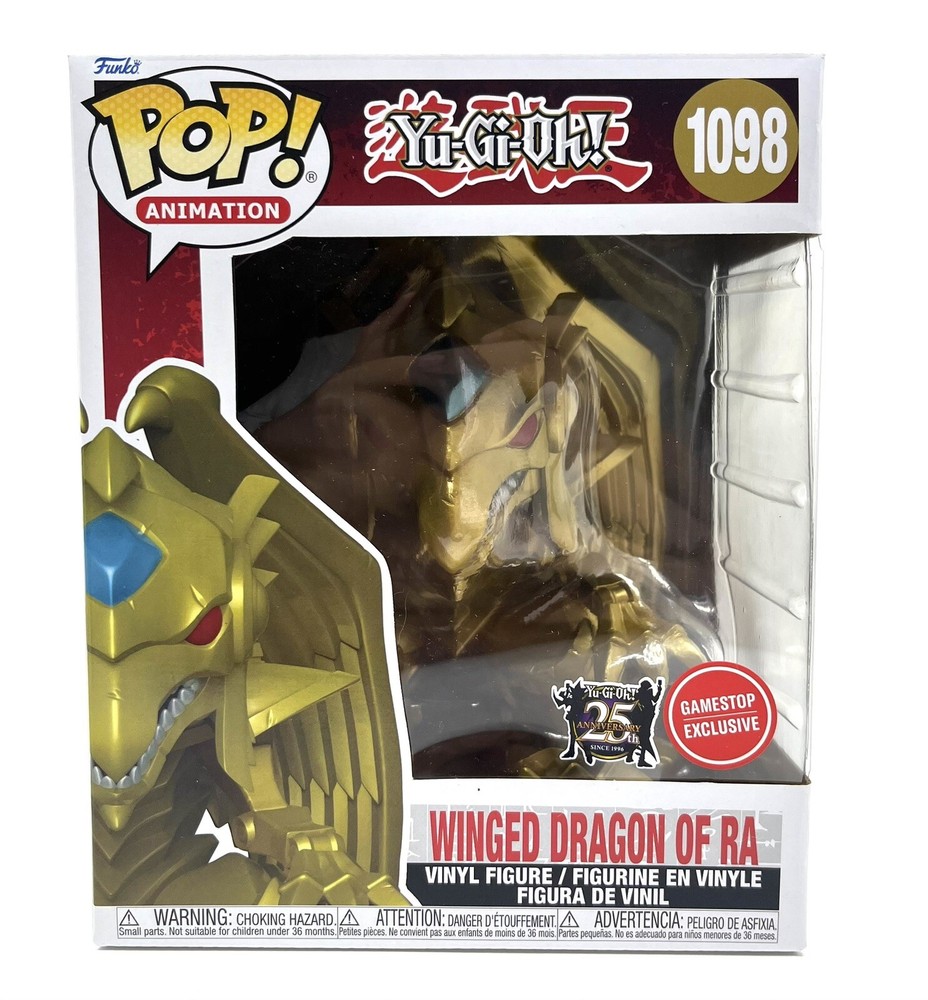 Funko Pop! Animation Yu-Gi-Oh! Winged Dragon of Ra 6” #1098 GameStop Exclusive Please view all images to see the condition of the pop The pop will be packaged carefully to prevent any damage from occurring while in transit This Funko Pop! vinyl figure is a must-have for any Yu-Gi-Oh! fan. Featuring The Winged Dragon of Ra character in a gold color and a size of 6 inches, this piece is perfect for collectors of all ages. It is part of the Yu-Gi-Oh! Series 2 and is an exclusive item at GameStop. The figure has been graded 100 and is certified by Action Figure Authority (AFA). It also comes with no certification number, making it unique. The Funko Pop! Winged Dragon of Ra #1098 model is made of vinyl and belongs to the Pop! product line. It is a great addition to any anime and manga-themed collection.