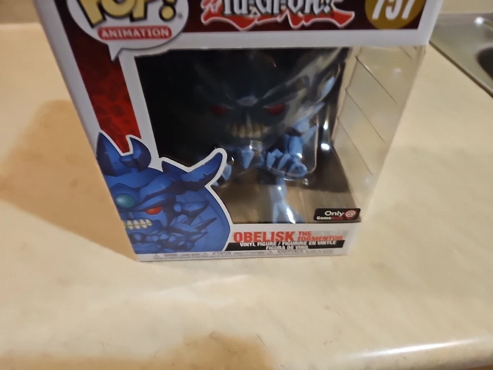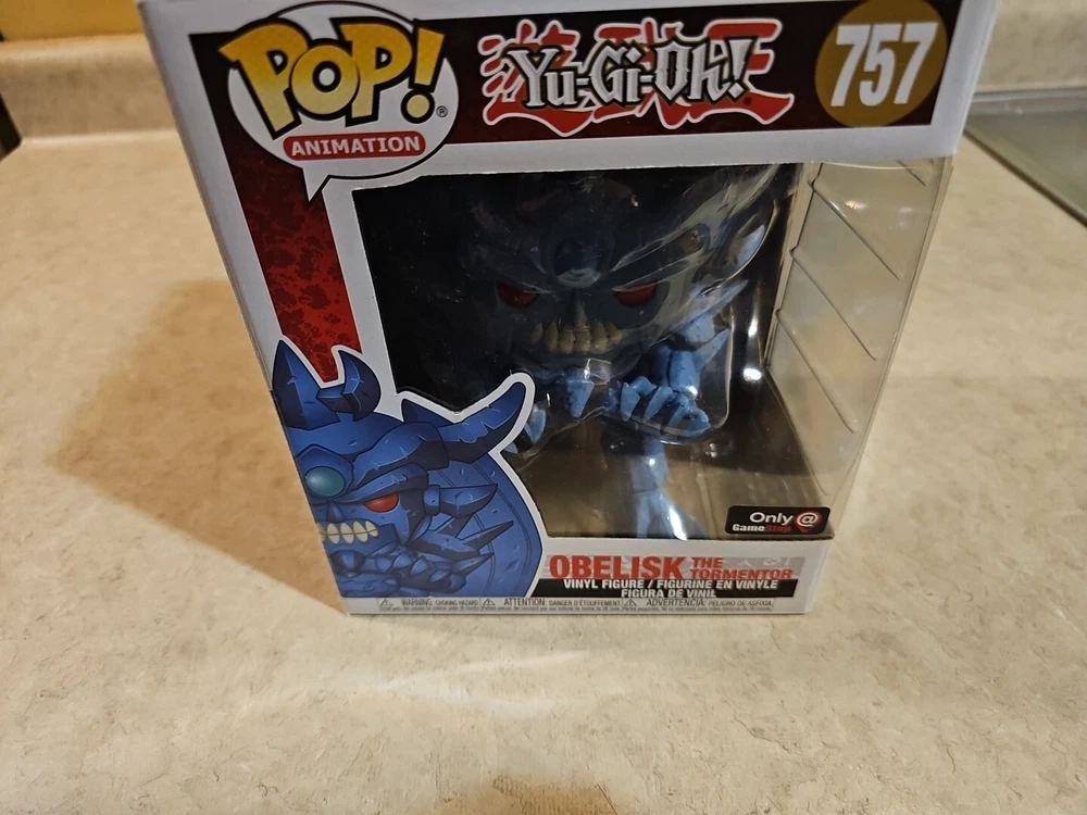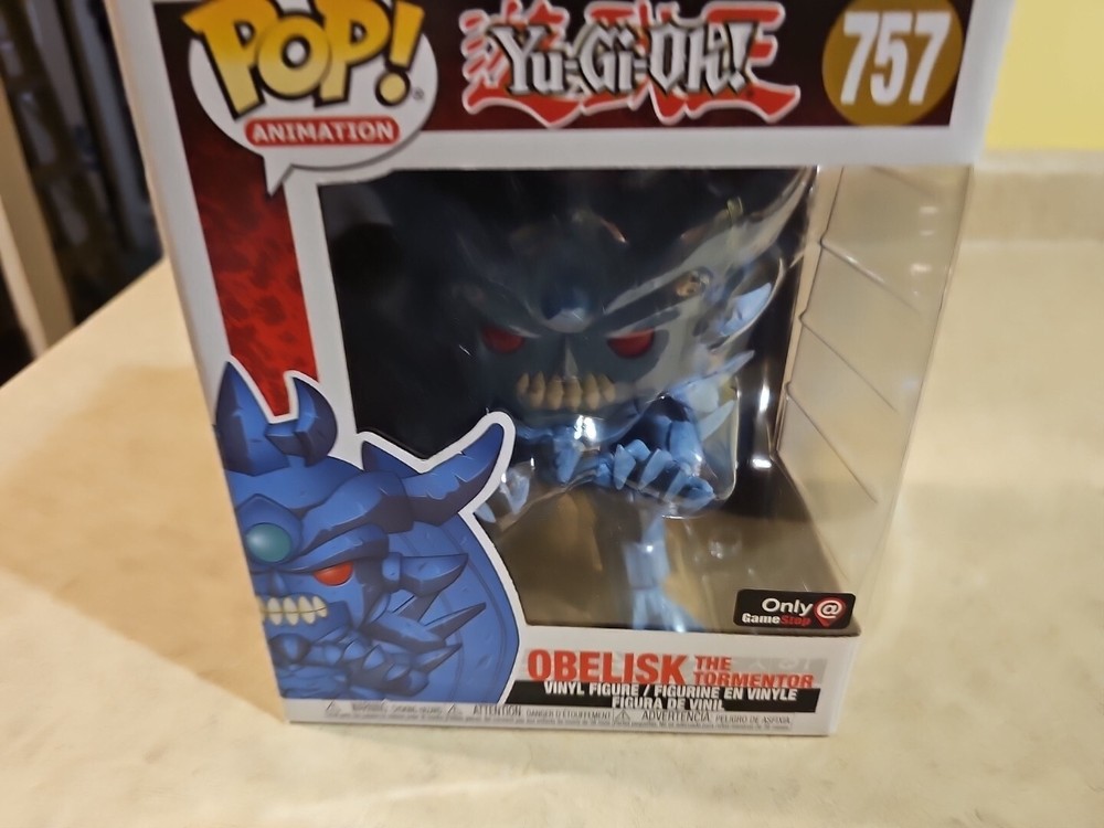 Up for sale is a Funko Pop! Vinyl figure of Obelisk the Tormentor, standing at 6 inches tall. This figure is part of the Yu-Gi-Oh! Series 2 collection and features an exclusive GameStop sticker. The vinyl material and attention to detail make for a great addition to any fan's collection. The character, from the popular anime series, is depicted in his Super form and comes in box number 757. This Pop! Vinyl figure is a must-have for any Yu-Gi-Oh! fan and is part of the Pop! Vinyl Super 6 in product line. Don't miss out on the chance to add this exclusive item to your collection!