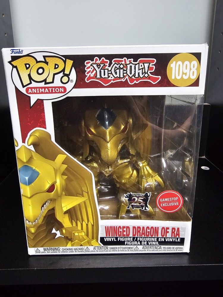 The Funko Pop! Vinyl Super 6 in: Yu-Gi-Oh! - Winged Dragon of Ra (Metallic) (Super) is a collectible figure featuring the iconic character from the Yu-Gi-Oh! franchise. This exclusive item from GameStop is part of the Pop! Vinyl Super 6 in series, standing at a larger size for added impact. The metallic design adds a unique touch to this anime-themed collectible, making it a sought-after piece for fans of Yu-Gi-Oh! and anime collectors alike.