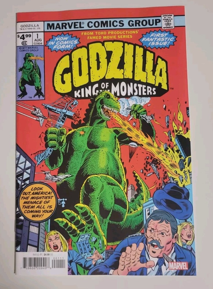 GODZILLA #1 08/2024 VF+ FACSIMILE REPRINT EDITION MARVEL COMICS. Shipped SECURELY USPS Mail. Bagged and Boarded. GODZILLA #1 FACSIMILE EDITION We offer EASY Combined Shipping! Check out our storefront for details. Please let me know if you have any questions!!! The King of the Monsters goes on the rampage in the Marvel Universe in this Facsimile representation of the first issue of the classic comic book! When Godzilla surfaces in Alaska and leaves a path of destruction, it naturally attracts the attention of Nick Fury and S.H.I.E.L.D.! But what can they possibly do to stop a towering, fire-breathing force of nature like Godzilla? Find out in a bold adventure of the legendary kaiju by a pair of industry titans: Doug Moench and Herb Trimpe! It’s one of the all-time great Marvel comic books, boldly re-presented in its original form, ads and all! Reprinting GODZILLA (1977) #1.