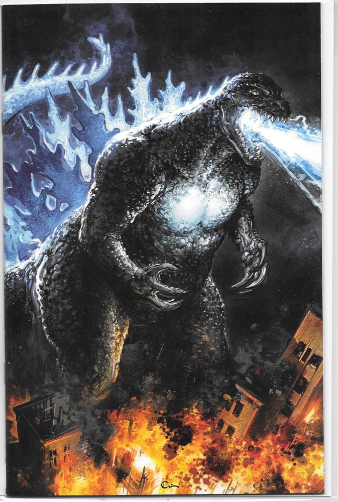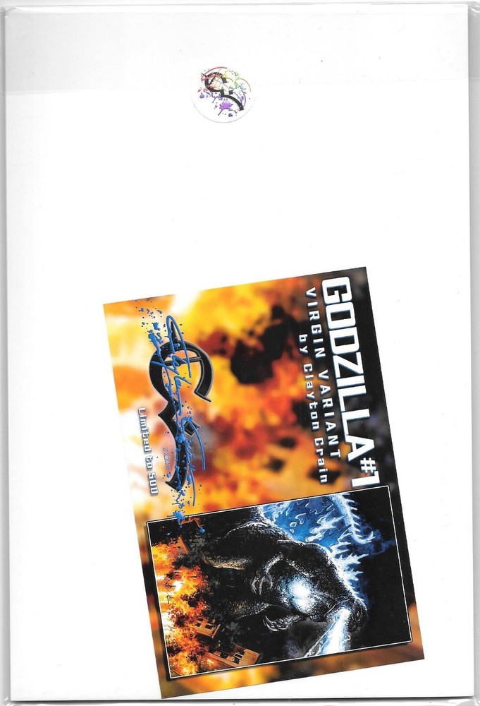 Up for bid is a variant cover of Godzilla #1 virgin variant cover. The virgin variant cover is done by the amazing Clayton Crain. This book is limited to only 500 pieces and comes with an official COA! I handle all of my books with absolute love and care! Each issue will come bagged and boarded and shipped securely. All comics are shipped in a secure Gemini cardboard mailer. Free shipping for those in the CONUS. Message if international. Check out my other listings and do not hesitate to ask any questions.