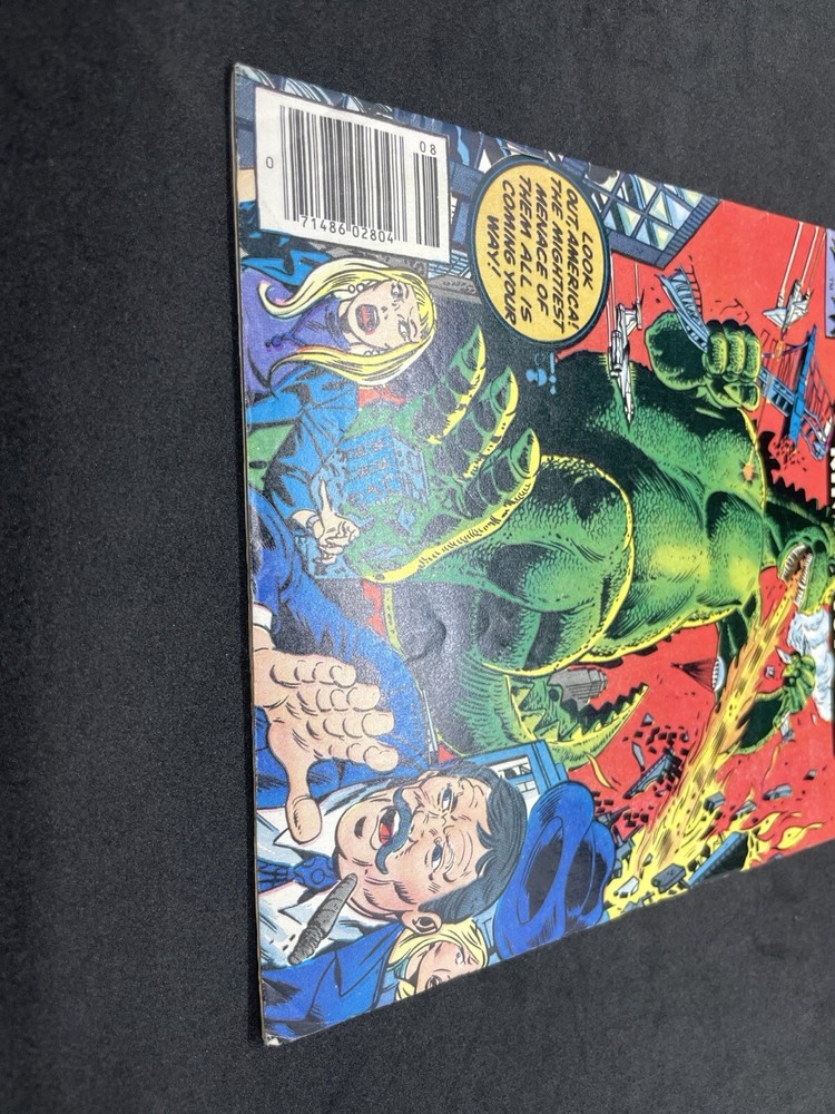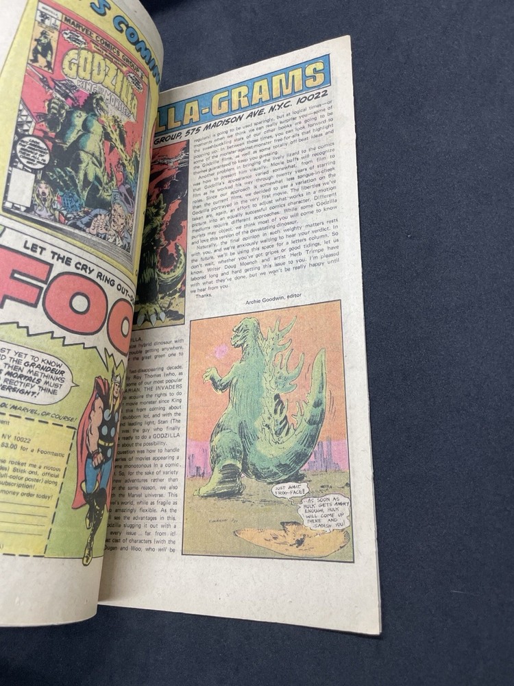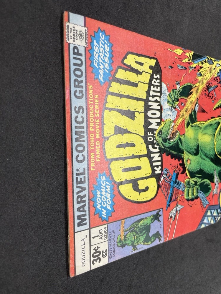 Welcome to Ptarah Ptoys! getting back into reselling online and are excited to share our comic collection with you. Keep an eye out for more treasures, and don't forget to inspect the pictures for condition details plus combined shipping on multiple items. Each comic is carefully shipped with bags, boards, and an official comic book-specific shipper. If you have any questions, feel free to ask. Happy browsing For “Godzilla: King of the Monsters #1” (1977), here’s a detailed assessment of its condition based on the images: Front Cover: 1. Color and Gloss: The cover features strong, vibrant colors with good gloss retention. The red background and green Godzilla illustration remain visually striking. 2. Spine: There are some minor stress lines along the spine, visible up close. However, the staples are tight, with no signs of rust or separation. 3. Corners and Edges: The corners are slightly blunted, with minor wear along the edges, particularly on the bottom right. There are no significant tears or creases. 4. Surface: The surface is clean, with no major dents, scratches, or marks. The printing and illustrations remain clear and sharp. Back Cover: 1. Color and Cleanliness: The back cover is bright and clean, with white areas slightly off-white due to natural aging. There are no significant stains or blemishes. 2. Edges and Corners: Similar to the front, the back cover has minor edge wear and slightly rounded corners but no tears. 3. Surface: The surface is smooth with no creasing or major imperfections. Interior Pages: 1. Page Quality: The pages are off-white to cream, typical for comics of this era. There is no brittleness or excessive yellowing, indicating proper storage. 2. Staple and Binding Integrity: The pages are securely attached to the staples, with no loosening or detachment. The staples appear to be in excellent condition. 3. Print Quality: The interior illustrations and text are vibrant and clear, with no fading or ink smudging. General Condition: • Wear and Tear: Minor handling wear is evident, primarily in the spine and corners. However, the comic presents very well for its age. • Gloss and Color Retention: Both the front and back covers retain their original vibrancy and gloss, which enhances their appeal to collectors. Estimated Grade: This comic likely falls in the 7.5-8.0 (Very Fine) range under CGC grading standards. It is well-preserved, with minor defects that do not significantly detract from its overall appearance. Next Steps: If you’d like, I can research recent market values for “Godzilla: King of the Monsters #1” in this grade range to provide an estimate. Let me know! This rare and highly sought-after comic book features the iconic Godzilla in his first appearance in the US Comics tradition. Written by Doug Moench and illustrated by Herb Trimpe, this single issue comic book from 1977 is a must-have for collectors and fans of the horror and sci-fi genre. The story takes readers on a thrilling adventure through the Marvel (MCU) universe, featuring beloved characters like Shield, Nick Fury, and Godzilla himself. The comic book is in its original format and has been certified as uncertified. It is a vintage piece from the Bronze Age (1970-83) and is a single unit. The cover art by Herb Trimpe is stunning and adds to the collectability of the comic book. This item is a true gem for any comic book or Marvel fan and is a great addition to any collection.