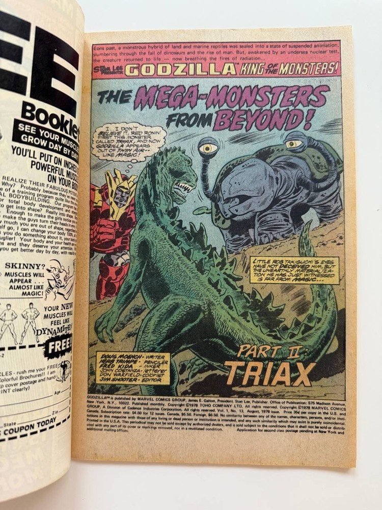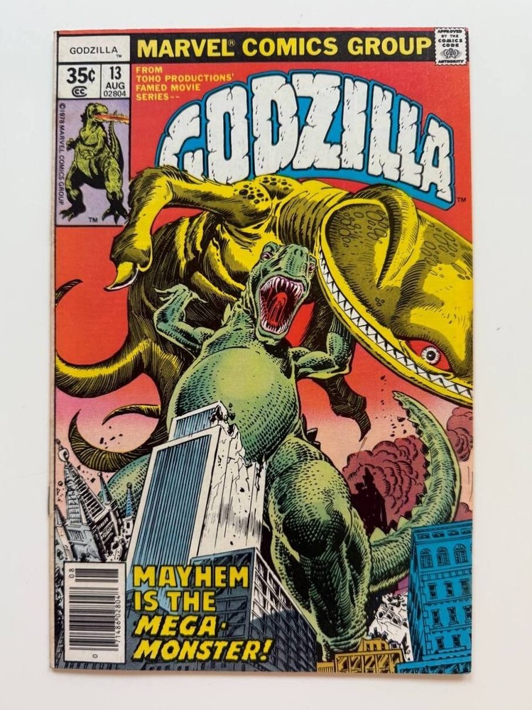 GODZILLA #13 (1978) | Marvel Comics | "Triax!" This VF (Very Fine) copy of Godzilla #13 (1978) comes from the respected Wilbur Collection and includes a Certificate of Authenticity (COA). The comic remains in excellent shape for its age, showing only minor signs of wear typical for a VF grade, such as slight stress lines or minor corner touches. The pages are clean, colors are vibrant, and the cover retains strong gloss and structure. An impressive Bronze Age piece for collectors of Marvel and kaiju comics alike. 🦖 PLOT: Main Story – "Triax!" Written by Doug Moench with art by Herb Trimpe and Fred Kida, this issue is Part 2 of 3 of the epic "Mega-Monsters from Beyond" storyline. Godzilla returns to Earth just in time to aid Red Ronin against Triax, a monstrous alien beast sent to soften the planet for invasion. The situation worsens when two more Mega-Monsters, Rhiahn and Krollar, arrive to bolster Triax’s attack. With Earth's future hanging in the balance, Godzilla fights an uphill battle against overwhelming odds in classic monster-smashing action. 🎨 ART & COVER HIGHLIGHT: Herb Trimpe’s artwork captures the sheer scale and chaos of the monster battles. The cover vividly portrays Godzilla holding the yellow Mega-Monster Triax high above his head, preparing to hurl him into a devastated cityscape. The broken buildings and clouds of smoke enhance the sense of destruction and the epic scope of the confrontation. Trimpe’s energetic penciling and dynamic staging bring the colossal showdown to life with bold, dramatic flair. 🔑 KEY FEATURES: Part 2 of the Mega-Monsters from Beyond Saga: A major story arc where Earth faces the threat of an alien invasion through monstrous emissaries. Appearance of S.H.I.E.L.D. and Red Ronin: Marvel's top secret agency and its giant robotic defender team up with Godzilla to protect the planet. Alien Monster Team-Up: Triax, Rhiahn, and Krollar create an overwhelming threat that tests Godzilla’s strength and resilience like never before. Wilbur Collection Copy: Comes with a COA certifying its origin from a well-respected comic collection. 💥 COLLECTOR’S VALUE: This issue is a standout from Marvel’s Bronze Age monster comics, combining superhero elements with classic kaiju action. VF copies with COA provenance like this one are highly desirable for Godzilla collectors, Marvel fans, and lovers of vintage monster stories. It represents a thrilling chapter in Godzilla’s Marvel adventures and a piece of Bronze Age comic history. 📦 CONDITION & SHIPPING INFO: 📝 Grade Disclaimer: Please note that the grade provided is an estimate. I do my best to evaluate each comic, but I cannot guarantee a 9.6/9.8 or any other specific grade. Your understanding is appreciated. 🚚 Combined Shipping Offer: Save on shipping by purchasing multiple items! Combined shipping is available to make your buying experience more cost-effective and convenient. 📦 Secure Packaging: Your comics will be protected and secured during transit. I use the reliable Gemini Comic Mailer to ensure your items arrive in the best possible condition. 📸 Photo Disclaimer: Any objects near the comics in the photos are decorative and not included in the sale.