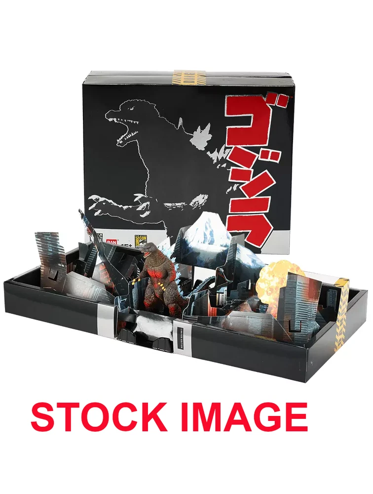 FROM: Retired Collectors Treasure Tubs TO: Your Kaiju Display Room _________________________________________________________________________ See pics of actual item for sale! and one stock photo to illustrate contents. This diorama is sealed and has been in storage in our basement bins. The package looks to be in good shape - there appears to be some wonkiness on how they align - see pics. Most likely due to being in a sealed box for 10 years. Please examine pics! LIMITED EDITION! 359 of 500 NEW! FREE SHIPPING! KAIJU! _________________________Product Descripton_________________________________ Godzilla 60th Anniversary Figure in Exclusive Diorama Packaging To celebrate the 60th anniversary of the most iconic monster of all time, Bandai is releasing a limited edition 6.5“ vinyl Godzilla figure in exclusive diorama packaging. The “King of the Monsters” has taken many forms throughout his 60 year history, but fans have never seen a combination like this! If you dare ignore the danger warning and open this highly stylized and collectible Godzilla package, you will be unleashing a scene of epic destruction that only Godzilla can create. As you open the package a city amid destruction rises up to become the back-drop for your attacking Godzilla figure. With the colors of the burning city reflected across his massive body and his spine aglow with the tell-tale radioactive energy for his Atomic Breath, you can imagine the imminent destruction of his foes and hear the final echo of his iconic roar as he slips back into the darkest depths of the sea until he’s awakened once again. Only 500 pieces produced and individually numbered.