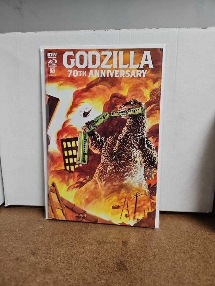 The product is a variant edition of the comic book "Godzilla 70th Anniversary #1," featuring artwork by EJ Su. It is a single issue in black & white style, with a cover artist named Peach MoMoKo. Published by IDW Publishing, the comic is part of the GI Joe universe and celebrates Godzilla's 70th anniversary. The story title is "Venom: Lethal Protector," and it is a US Comics tradition comic from 1979. This variant edition of the comic book is associated with the MegaCon event and showcases the character Godzilla in an action-packed adventure.