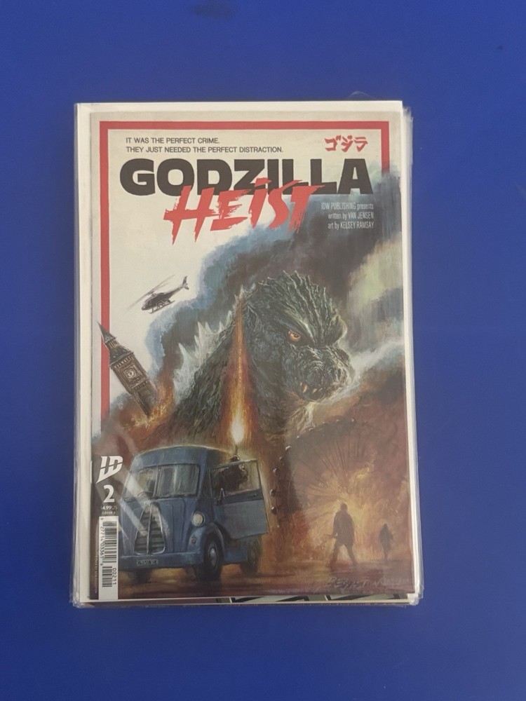 GODZILLA HEIST #2 1ST PRINT 1ST APPEARANCE MAIN Cover A IDW Comic 2025 NM+ Please see photos for best description. ALL BOOKS BAGGED + BOARDED + packaged with complete care in a Gemini Mailer. Shipped with USPS Media Mail. YES! TO COMBINED SHIPPING TO SAVE YOU SOME LOOT; I CAN SAFELY SHIP UP TO THREE CGC BOOKS IN A USPS MEDIUM FLAT RATE BOX. PLEASE MESSAGE DIRECTLY FOR COST! IG TOTALLYDADICALCOMICS