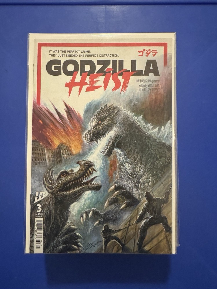 GODZILLA HEIST #3 1ST PRINT 1ST APPEARANCE MAIN Cover A IDW Comic 2025 NM+ Please see photos for best description. ALL BOOKS BAGGED + BOARDED + packaged with complete care in a Gemini Mailer. Shipped with USPS Media Mail. YES! TO COMBINED SHIPPING TO SAVE YOU SOME LOOT; I CAN SAFELY SHIP UP TO THREE CGC BOOKS IN A USPS MEDIUM FLAT RATE BOX. PLEASE MESSAGE DIRECTLY FOR COST! IG TOTALLYDADICALCOMICS