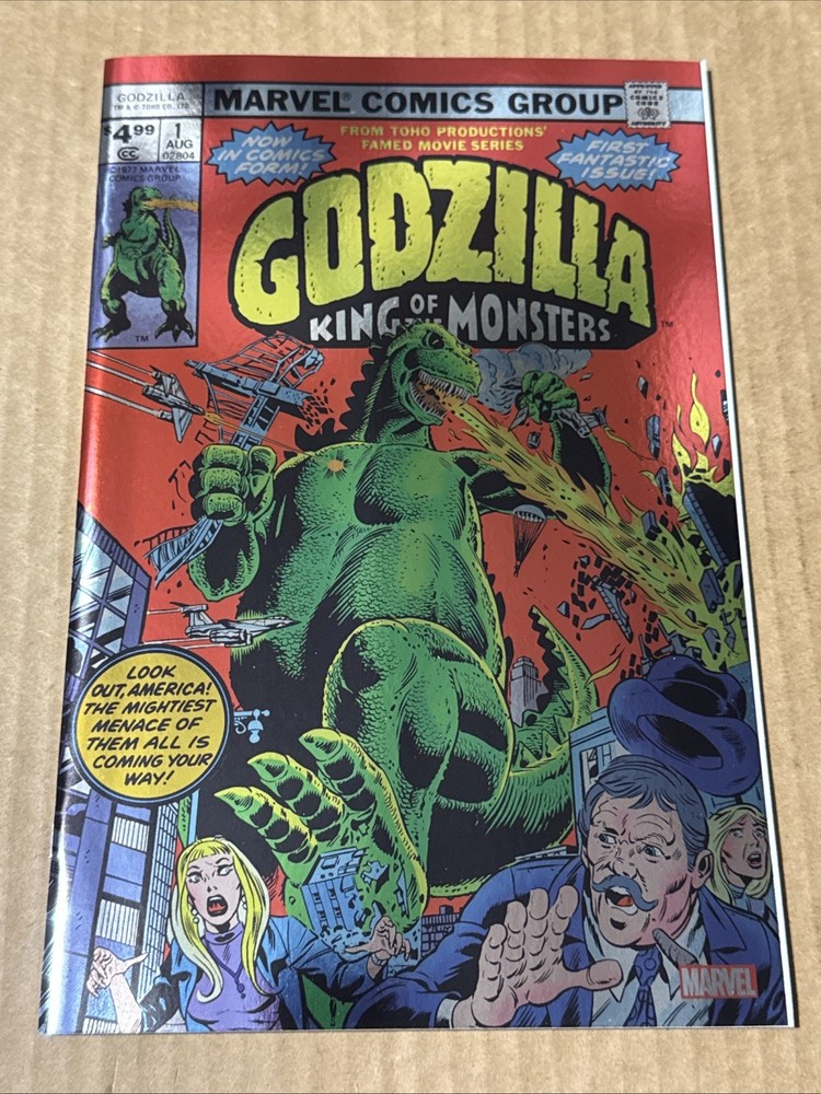 THIS IS A VERY FINE ,FIRST PRINT ISSUE OF GODZILLA #1 FACSIMILE EDITION FOIL VARIANT COVER FROM MARVEL COMICS (2024). WRITTEN BY DOUG MOENCH. ILLUSTRATED BY HERB TRIMPE. COMIC SHIPS WITH BAG AND BOARD IN A SECURE PACKAGE. COMBINED SHIPPING AVAILABLE. FEEL FREE TO ASK ANY QUESTIONS AND CHECK OUT MY STORE FOR OTHER GREAT COMICS AND COLLECTIBLES. THANKS FOR LOOKING.