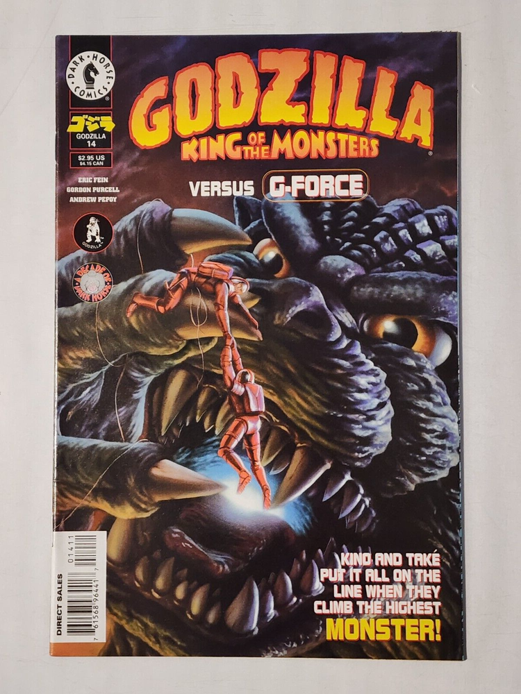 Listing is for a Godzilla King of the Monsters #14. Book shows several minor spine dents and some wear along edges. 1996 Dark Horse Comics. An excellent addition to any collection. Please view all photos, as this is exactly what you will receive. This item is a must have addition to any collection. We have more items up on eBay this week! We also have many more items in our eBay store. Use our eBay Store search function. Combine wins to save on postage, we also ship internationally! U.S. Bidders to pay $ 6.00 shipping. International bidders - email me before you bid for a shipping quote. Combine like orders and save on shipping. Customer service is our number one priority, contact us for any problems with combined shipping or other questions. Please check out our other auctions for more hard to find items, Comics, Graphic Novels, TPB's, Records, Games, Movies, Action figures, Toys, Non-Sports/Sports Cards, and Vintage Magazines. INTERNATIONAL BIDDERS - EMAIL US BEFORE BIDDING TO GET A SHIPPING QUOTE. Import duties, taxes, and charges are NOT INCLUDED in the item price or shipping charges. These charges are the buyer's responsibility. Please check with your country's customs office to determine what these additional costs will be prior to bidding / buying. These charges are normally collected by the delivering freight (shipping) company or when you pick the item up. Do not confuse them for additional shipping charges. We do not mark merchandise values below value or mark items as "gifts". US and International government regulations prohibit such behavior. RI Residents please add 7% for sales tax. You can pay us with ALL major credit cards or with PayPal. Pay me securely with any major credit card through PayPal! Please check out the other auctions we currently have running on eBay. ALL EBAY WINS CAN BE PICKED UP IN PERSON TO SAVE ON SHIPPING. E- MAIL US 24 HOURS IN ADVANCE OF PICK-UP PLEASE!