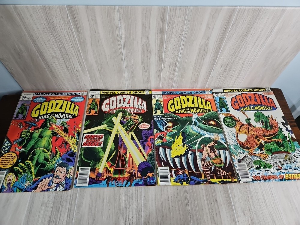 Dive into the thrilling world of monsters with the "Godzilla King of the Monsters" series from Marvel Comics, featuring issues #1, #2, #3, and #4. Published between 1977 and 1978, during the vibrant Bronze Age of comics, this set captures the essence of the era with its bold artwork and compelling storytelling. Fans of the genre will appreciate the classic narratives and the iconic portrayal of Godzilla that has captivated audiences for decades. Each issue is a testament to the creative legacy of the King artist/writer duo, bringing to life intense battles and captivating adventures with the legendary monster. These comics are a must-have for collectors and enthusiasts of US Comics tradition, offering a journey through some of the most entertaining tales of the genre. Whether for reading or collecting, these comics hold a special place in the annals of monster storytelling.