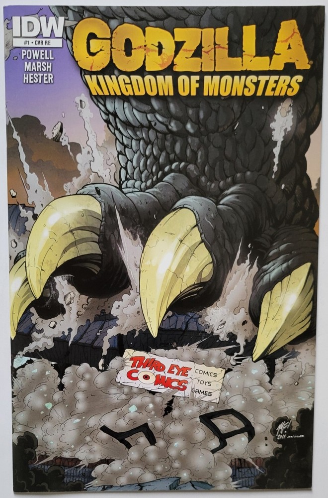 Very Fine - Near Mint Condition (Bag/Board) IDW 2011 First Printing GODZILLA KINGDOM OF MONSTERS #1 Retailer Exclusive THIRD EYE COMICS VARIANT By: Powell / Marsh / Hester / (ca) Matt Frank / Alex Ross "The King of the Monsters rises again, and for the first time in comics, he's bringing lots of other beloved Toho monsters with him in one destructive saga, and The Goon's Eric Powell is sounding the alarm. Powell will also paint covers for each issue of this new ongoing series, including a wraparound cover to kick things off! Acclaimed artist Phil Hester signs on for the first storyline, and Alex Ross supplies a painted 50/50 variant cover! This is the Big G storyline you've been waiting for!Formally Godzilla Monster World"